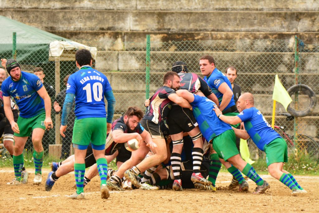 Al fischio di Lasagni i senesi hanno provato ad imporre il proprio gioco ma gli elbani hanno subito dato filo da torcere ai padroni di casa grazie ad un ottimo pack e ad una difesa molto attenta; in un campo in perfette condizioni (per quanto possibile) e sotto una lieve pioggi i senesi hanno dovuto attendere fino al 27’ minuto per realizzare i primi punti, meta di Bianco da touche e conseguente carretto. Il pack senese ha dopo pochi minuti dato una seconda prova di forza quando Baleani ha schiacciato ancora da maul avanzante; il primo tempo si è così concluso sul 12-0 con la sensazione di trovarsi di fronte un avversario veramente ben messo in campo e capace di contrastare lo strapotere del pack senese.