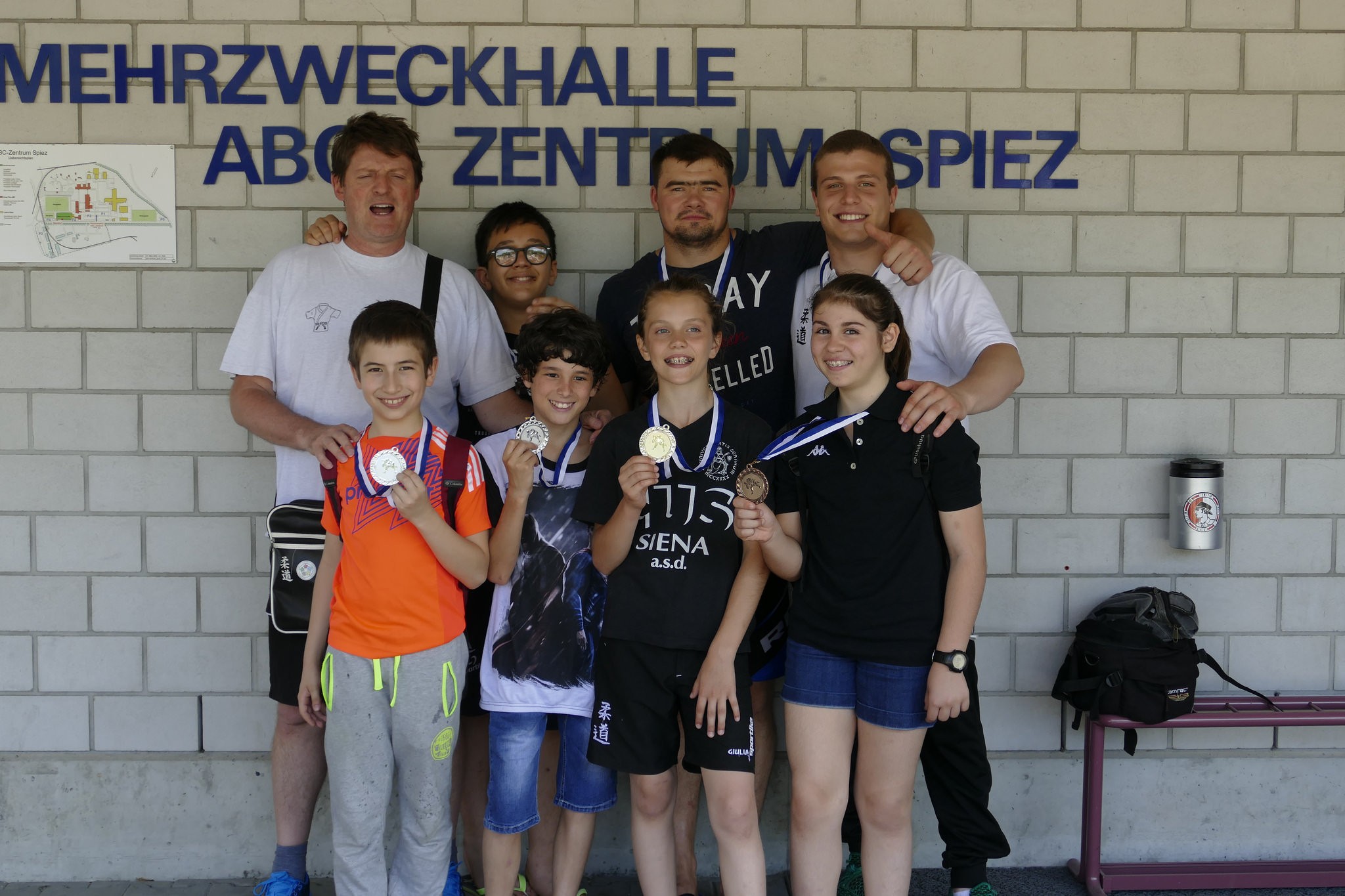 Ancora il Cus Siena Judo fa incetta di medaglie oltralpe in terra svizzera. Questa volta trasferta in terra straniera, a Spiez nell’Oberland cantone di Berna. Un gruppo di judoka senesi, giovani e meno giovani, sono andati a cimentarsi nella manifestazione internazionale “Ranking 500” nel cantone dell’Orso di cioccolata. Il gruppo formato da: Ianis Lotca, Emanuele Buzzacarin (junior e senior) e dagli Under 15 Tobia Grazzini, Matteo Galasso e Under 13 Claudia Cepparulo, Giulia Nocciolini, Giulio Muzzi accompagnato da Simone Cresti e i alcuni genitori “supporter” hanno sperimentato una manifestazione estera che assegna agli elvetici le posizioni nel ranking list nazionale.