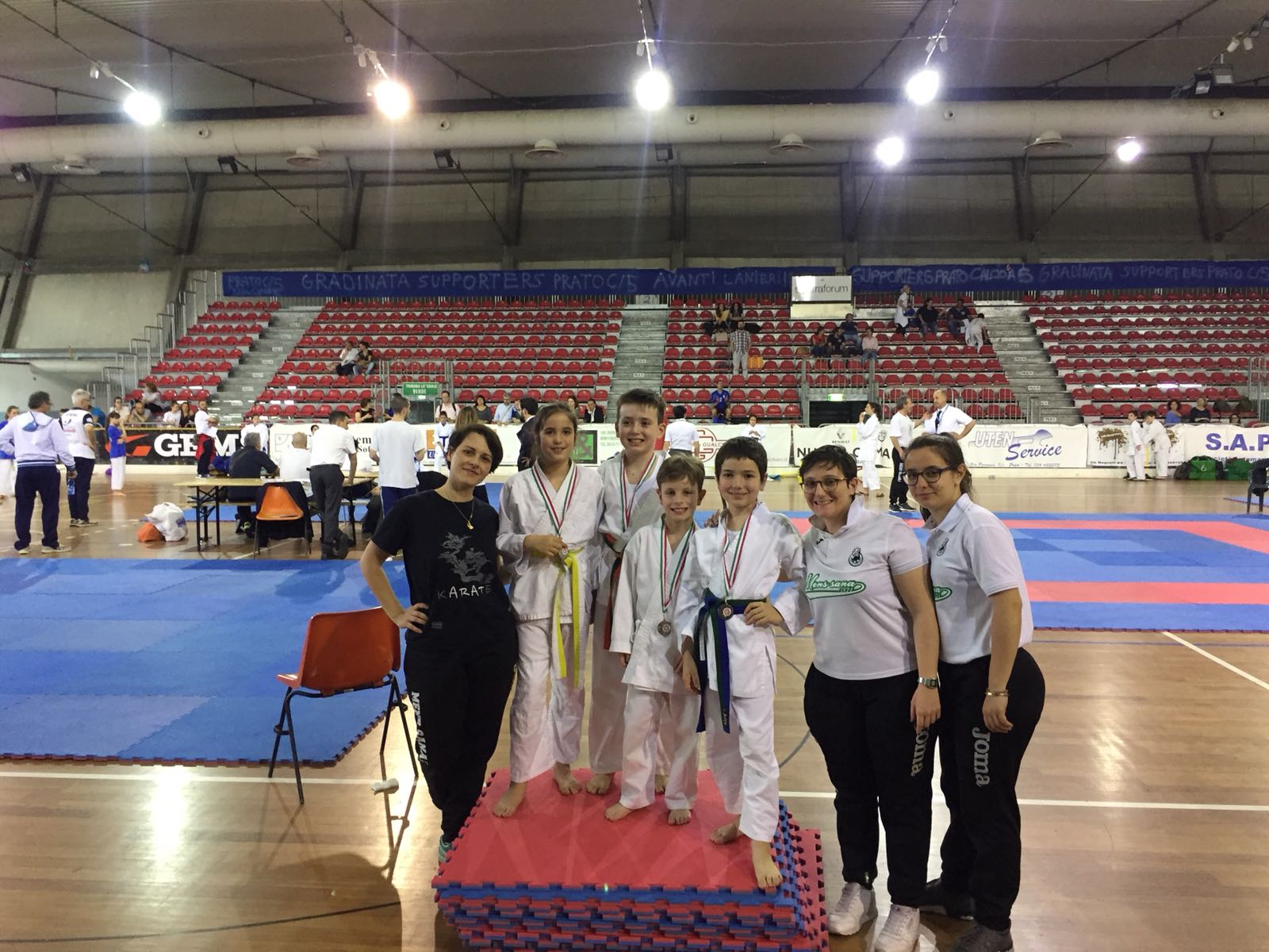 Stupenda giornata di sport e divertimento coronata da strepistosi. I risultati per la Mens Sana Karate alla gara regionale “Gran Premio Giovanissimi”, che si è svolto domenica 13 maggio a Prato: quattro ori, due argento e un bronzo conquistati dagli atleti biancoverdi. Aurora Anatriello nella categoria Esordienti, cinture colorate, Kumite -53 Kg conquista il primo posto dominando la propria categoria, dimostrando tutte le proprie doti e capacità tecniche; Valerio Chiari: categoria Esordienti, cinture colorate, Kumite -50 Kg, alla sua prima gara si aggiudica l’oro con un incontro molto combattuto. Nella Categoria Fanciulli Erica Nulli Rinalducci e Milea Maya, conquistano l’oro, Azzurra Banfi e Margherita Butini l’argento, Bianca Mattii il bronzo, rispettivamente nelle proprie categorie.