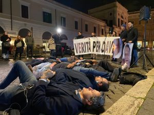 Queste le parole di Carolina Orlandi, che oggi pomeriggio a Roma in Piazza Santi Apostoli, ha organizzato un presidio nell’anniversario della morte di David Rossi, deceduto dopo essere precipitato dalla finestra del suo ufficio a Rocca Salimbeni la sera del 6 marzo 2013. Prima dell’inizio del presidio sono state mostrate proprio le immagini dell’autopsia dell’ex capo comunicazione Mps e poi sono stati rievocati i suoi lunghi minuti di agonia vissuti dopo l’impatto con l’asfalto del Vicolo di Monte Pio. A sdraiarsi per prima la figlia Carolina, a seguirla gli altri partecipanti al sit-in.