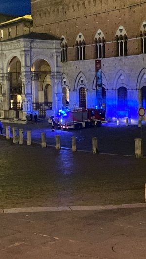 Siena, intervento dei vigili del fuoco in Piazza del Campo, da quanto si apprende si tratterebbe solo di alcune scintille provenienti da un cavo elettrico.