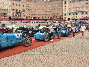 E’ un colpo d’occhio spettacolare quello che forniscono le auto della mille miglia in sosta in Piazza del Campo. La tradizione con questo appuntamento prosegue e sono molti i turisti che si sono fermati ad ammirare i veicoli sia sportivi che d’epoca che oggi hanno animato la città di Siena.