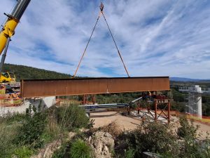 Nel cantiere per il raddoppio a quattro corsie del lotto 4 della strada statale 223 “di Paganico” (E78 Grosseto-Siena) è iniziato il varo delle travi metalliche del nuovo viadotto “La Coscia”.