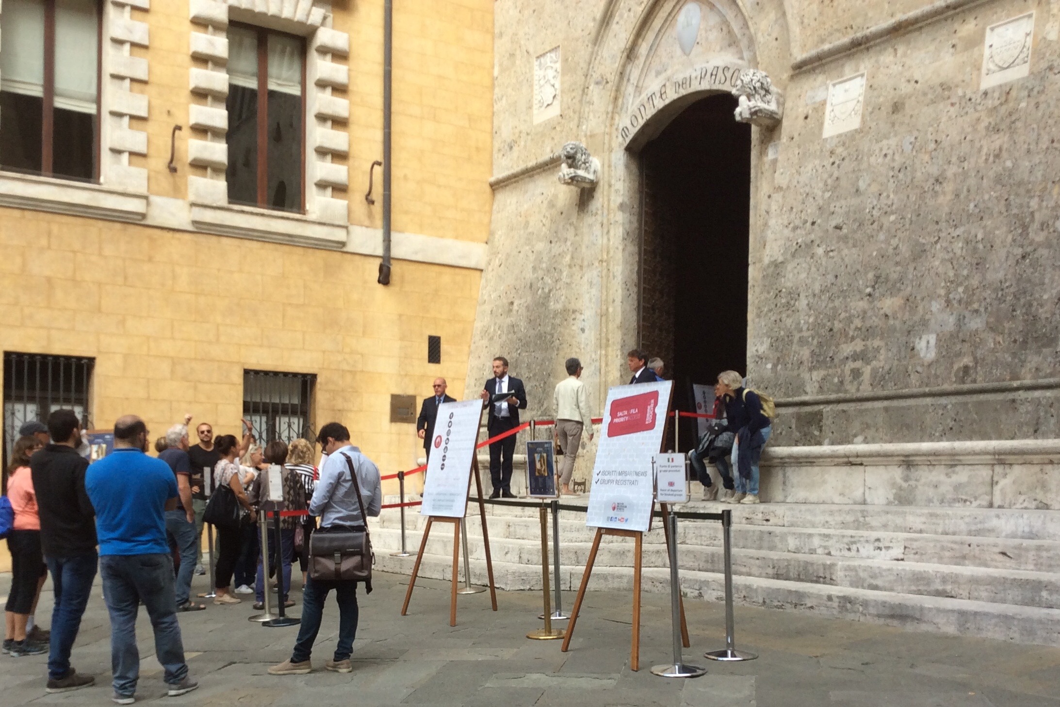 Oltre duemila persone hanno visitato Palazzo Salimbeni e Palazzo Sansedoni a Siena, nella giornata di sabato 1 ottobre, in occasione dell’apertura straordinaria della sede storica di Banca Monte dei Paschi e della Fondazione Monte dei Paschi di Siena per l’iniziativa “Invito a Palazzo, Arte e storia nelle Banche e nelle Fondazioni di origine bancaria”, promossa dall’Associazione Bancaria Italiana, in collaborazione con ACRI-Associazione di Fondazioni e Casse di Risparmio.