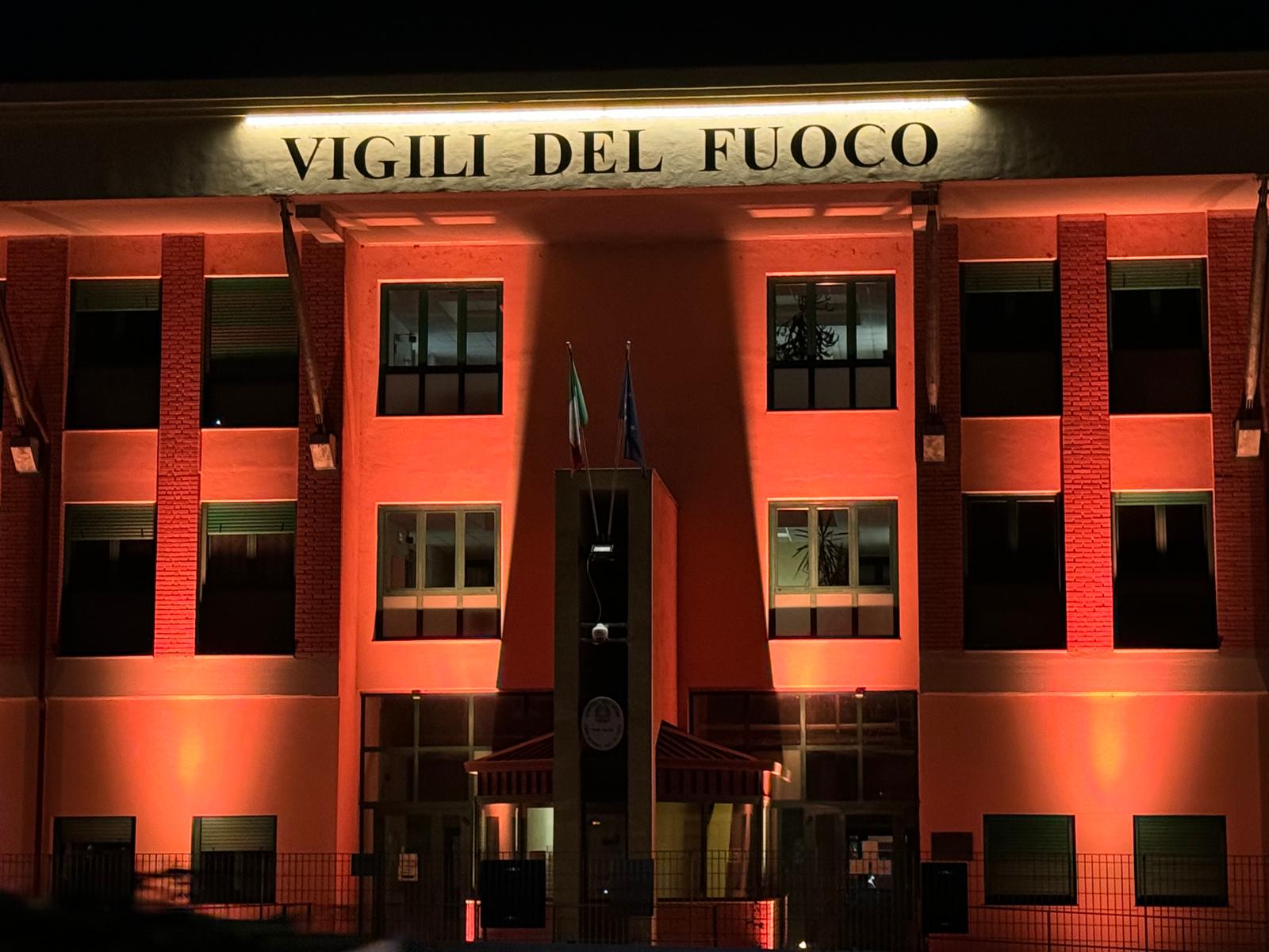 In occasione della ricorrenza della Giornata Internazionale contro la violenza sulle donne la Caserma dei Vigili del Fuoco di Siena si é illuminata di color arancio aderendo alla campagna “ORANGE THE WORLD 2024” promossa dal Soroptimist International d’Italia, la cui Presidente del Club di Siena Anastasia Sardo ha pregiato il Comando Vigili del Fuoco, coinvolgendolo.