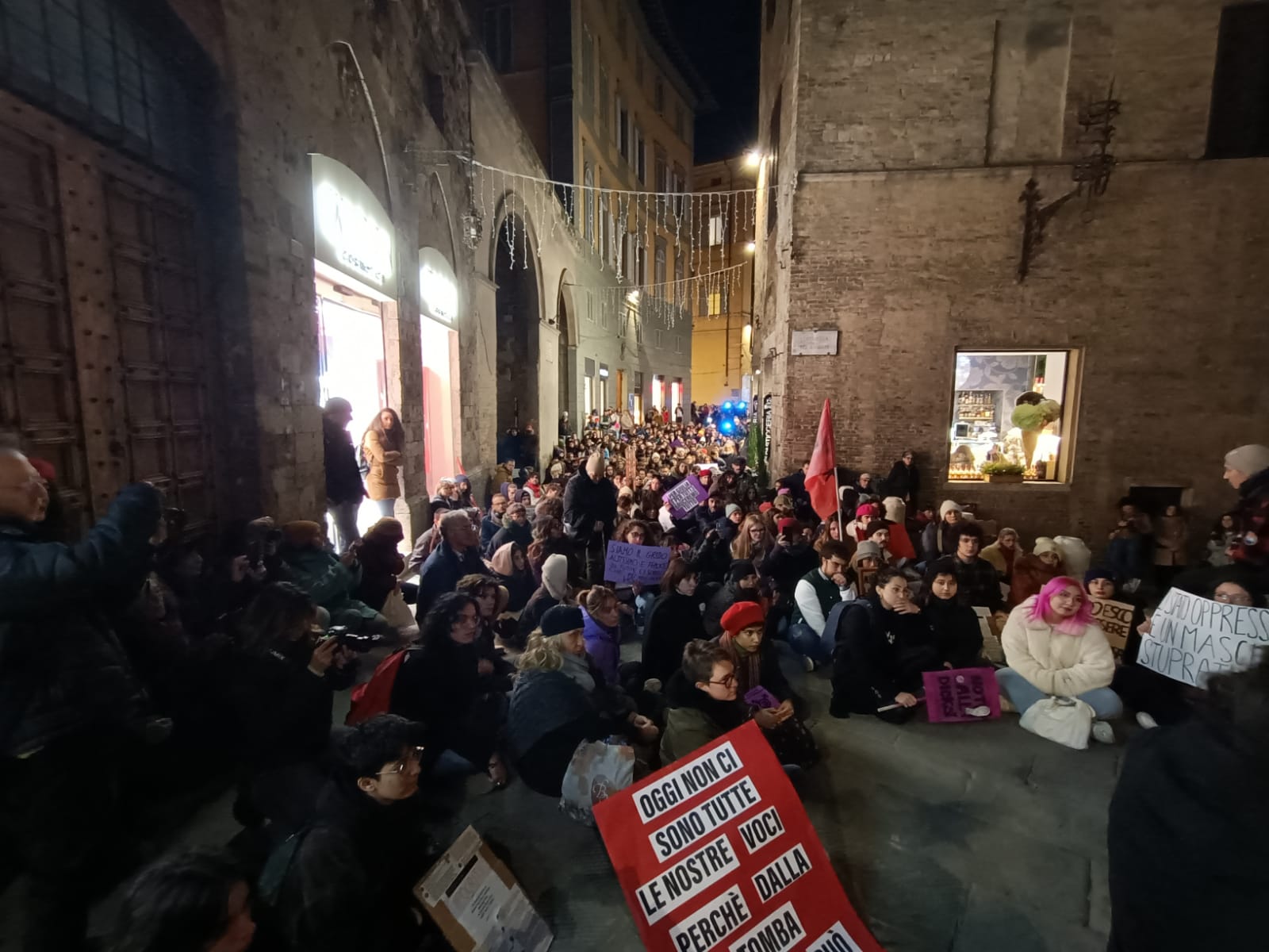 Striscioni, cori, slogan e un grido di dolore univoco per dire basta alla piaga della violenza di genere, il corteo é partito in piazza Matteotti ed é arrivato al Duomo. Di fronte a Piazza del Campo le manifestanti e i manifestanti si sono seduti a terra come segno di protesta, per poi fare un minuto di rumore. Rumore per il truce femminicidio della giovane Giulia Cecchettin, diventata il simbolo della piaga che affligge la società.