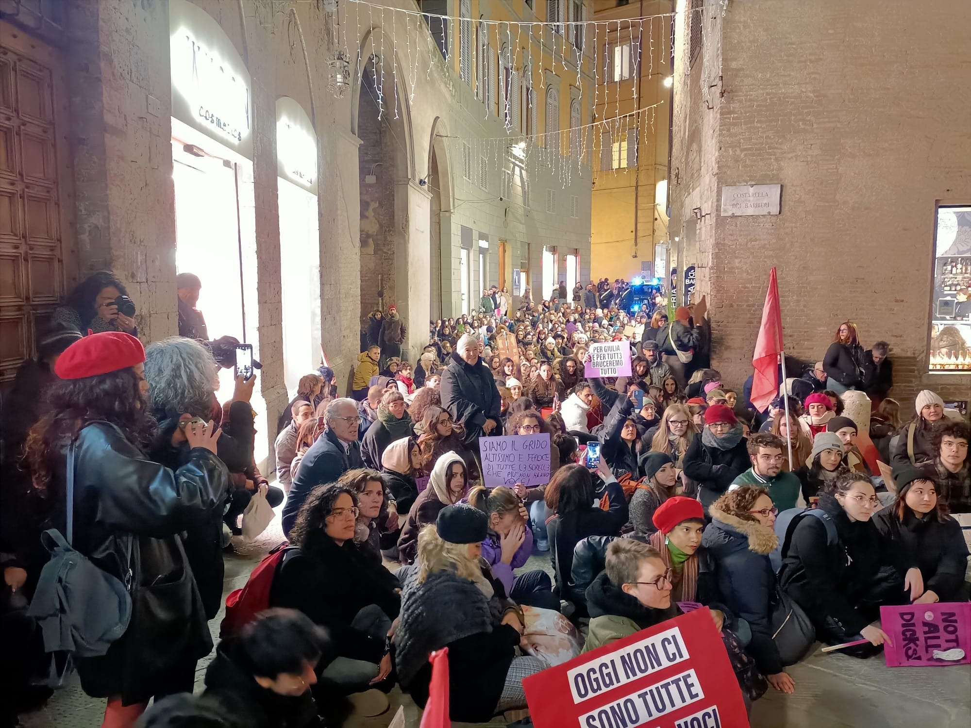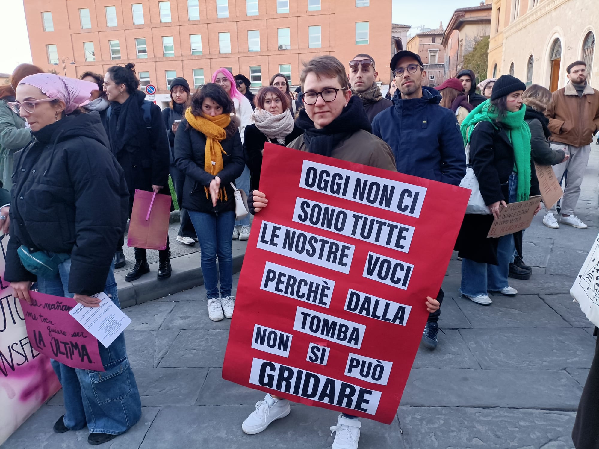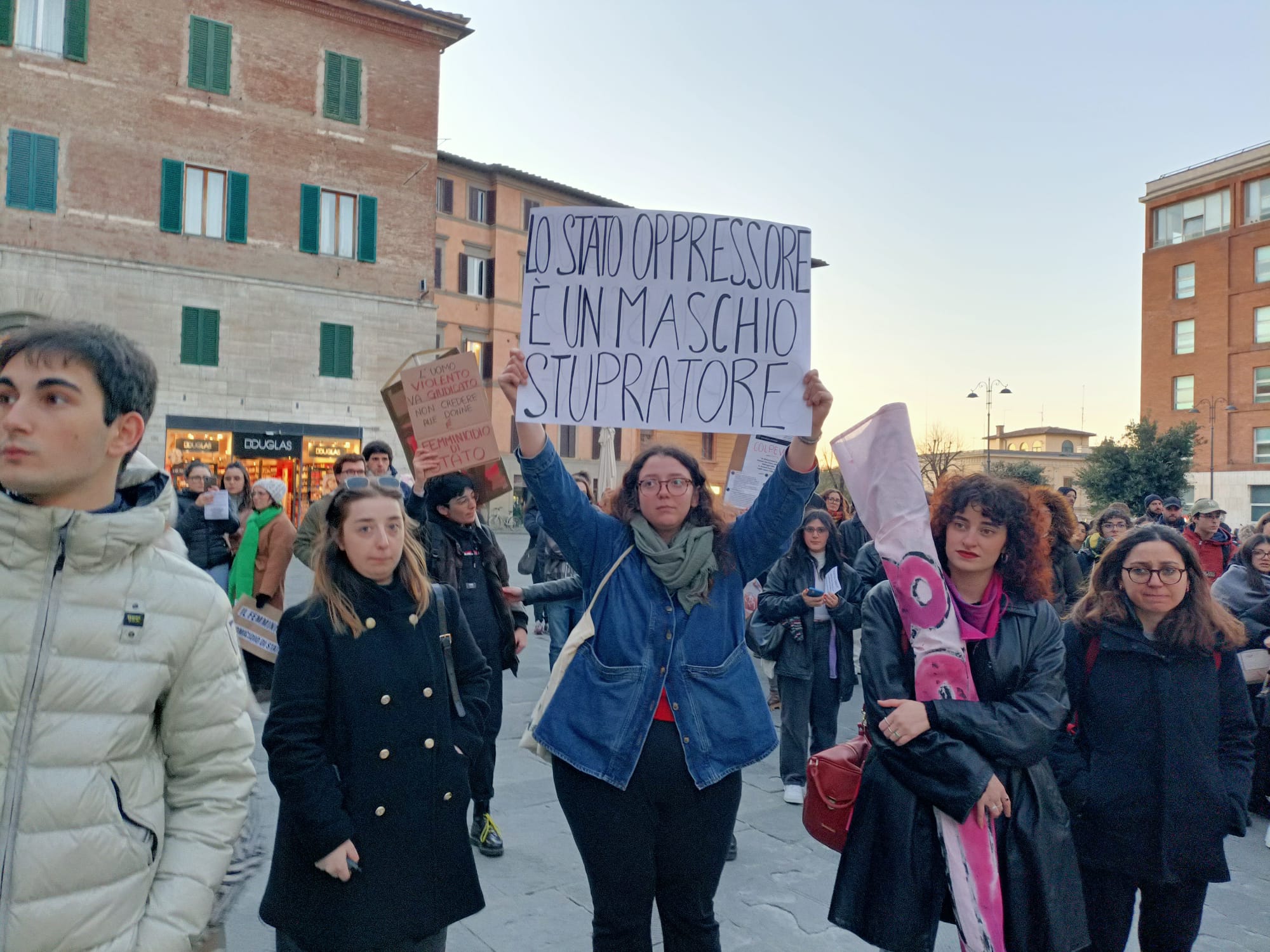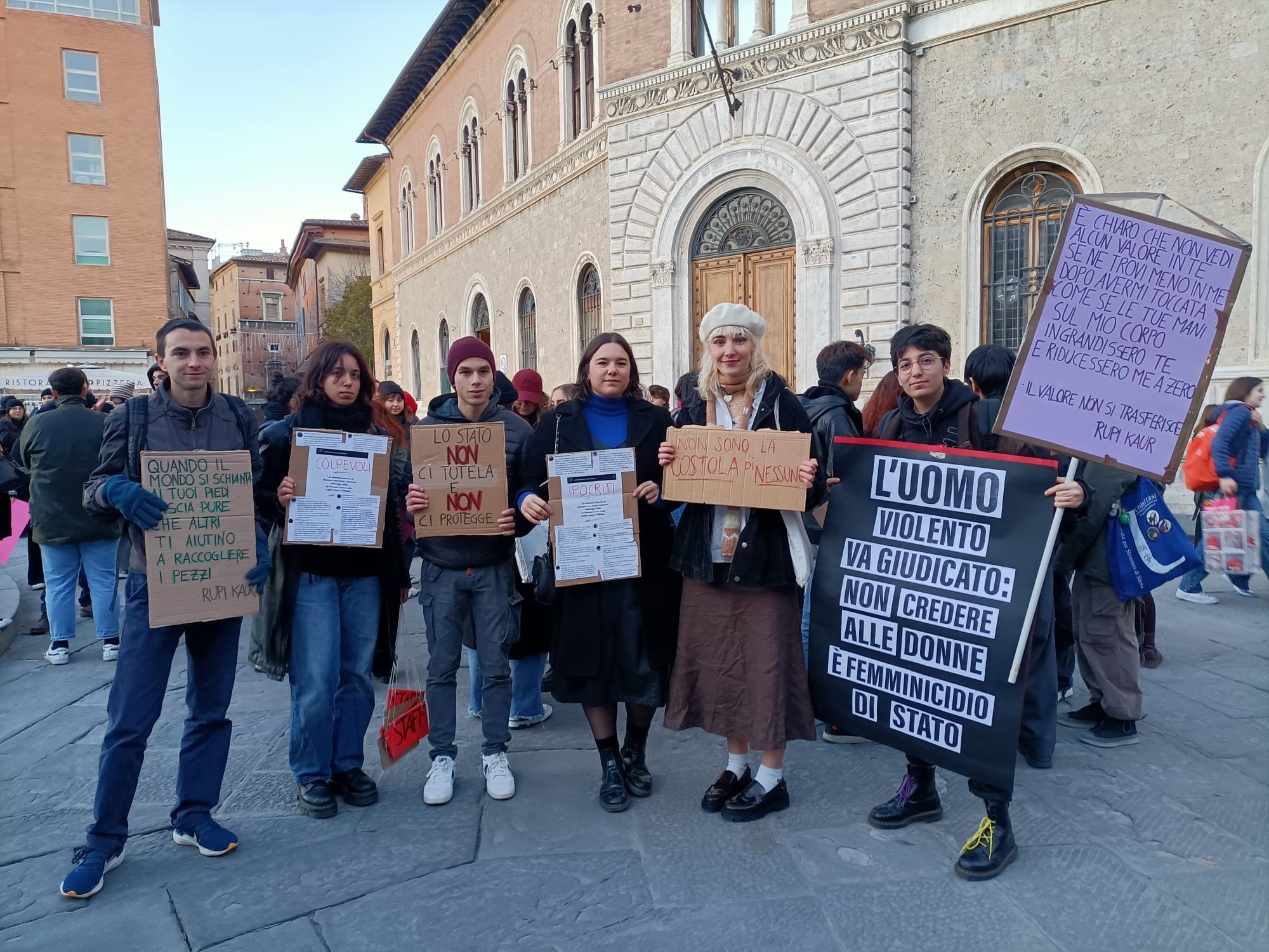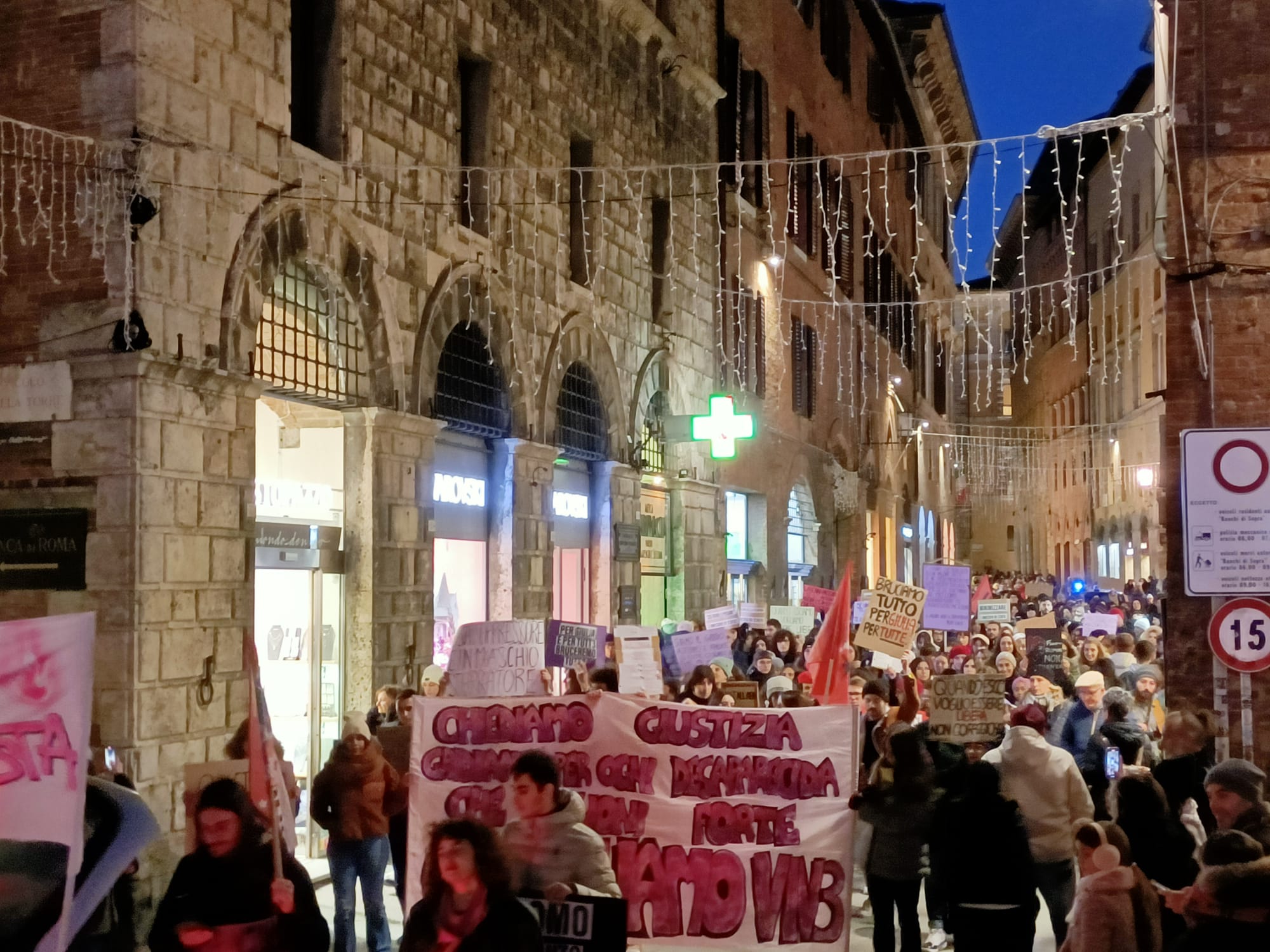 Striscioni, cori, slogan e un grido di dolore univoco per dire basta alla piaga della violenza di genere, il corteo é partito in piazza Matteotti ed é arrivato al Duomo. Di fronte a Piazza del Campo le manifestanti e i manifestanti si sono seduti a terra come segno di protesta, per poi fare un minuto di rumore. Rumore per il truce femminicidio della giovane Giulia Cecchettin, diventata il simbolo della piaga che affligge la società.