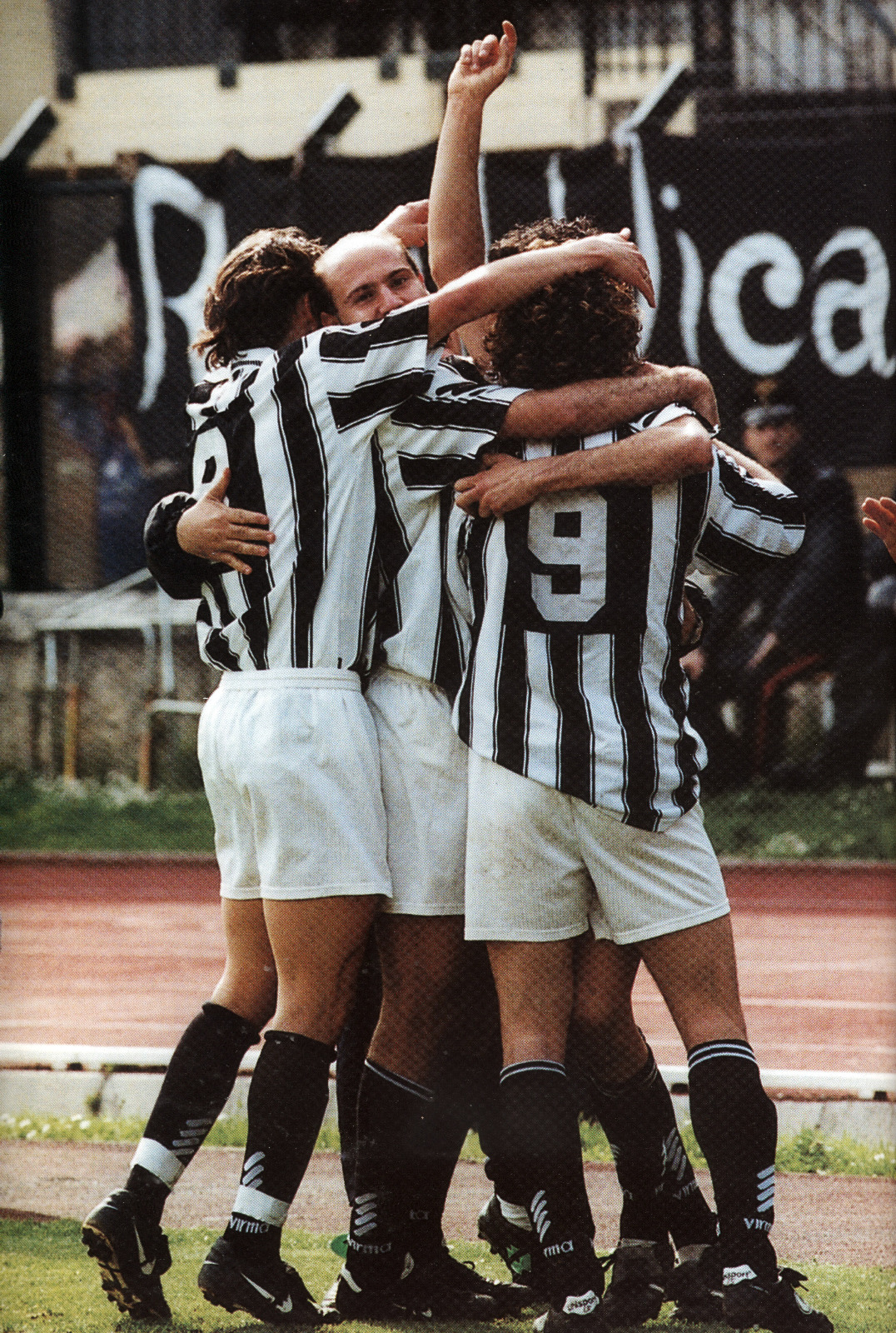Oggi è il giorno in cui ricorre una delle imprese più straordinarie dello sport senese. Infatti era il 7 maggio 2000 quando la Robur, battendo in casa per 2 a 0 il San Donà in un pomeriggio piovoso, si guadagnò l’accesso alla serie B, una categoria che mancava da ben 53 anni. La cavalcata della squadra guidata da Antonio Sala fu fantastica e indimenticabile, i bianconeri dominarono la classifica dalle primissime giornate e proposero un calcio vivace e moderno che ancora oggi è un piacere riguardare. Molti gli eroi di quella stagione, dal capitano Michele Mignani al suo compagno di reparto Gill Voria: l’autore del colpo di testa che valse la storica vittoria contro il Pisa divenuta una vera e propria icona del calcio senese di tutti i tempi e poi Totò Arcadio con il suo strapotere fisico, la grazia tattica di Sciaccaluga, la veemenza di Colasante, la corsa di Orocini e Pinton, la grande abnegazione e i goal di Pagano e Ghizzani, le parate di Mancini, tutti ingredienti che si miscelarono alla perfezione agli schemi calcistici evoluti di Antonio Sala. Da mettere in risalto anche il lavoro serio e puntuale della Società che fu sostenuta da un calore da parte dei tifosi che non si era mai visto.