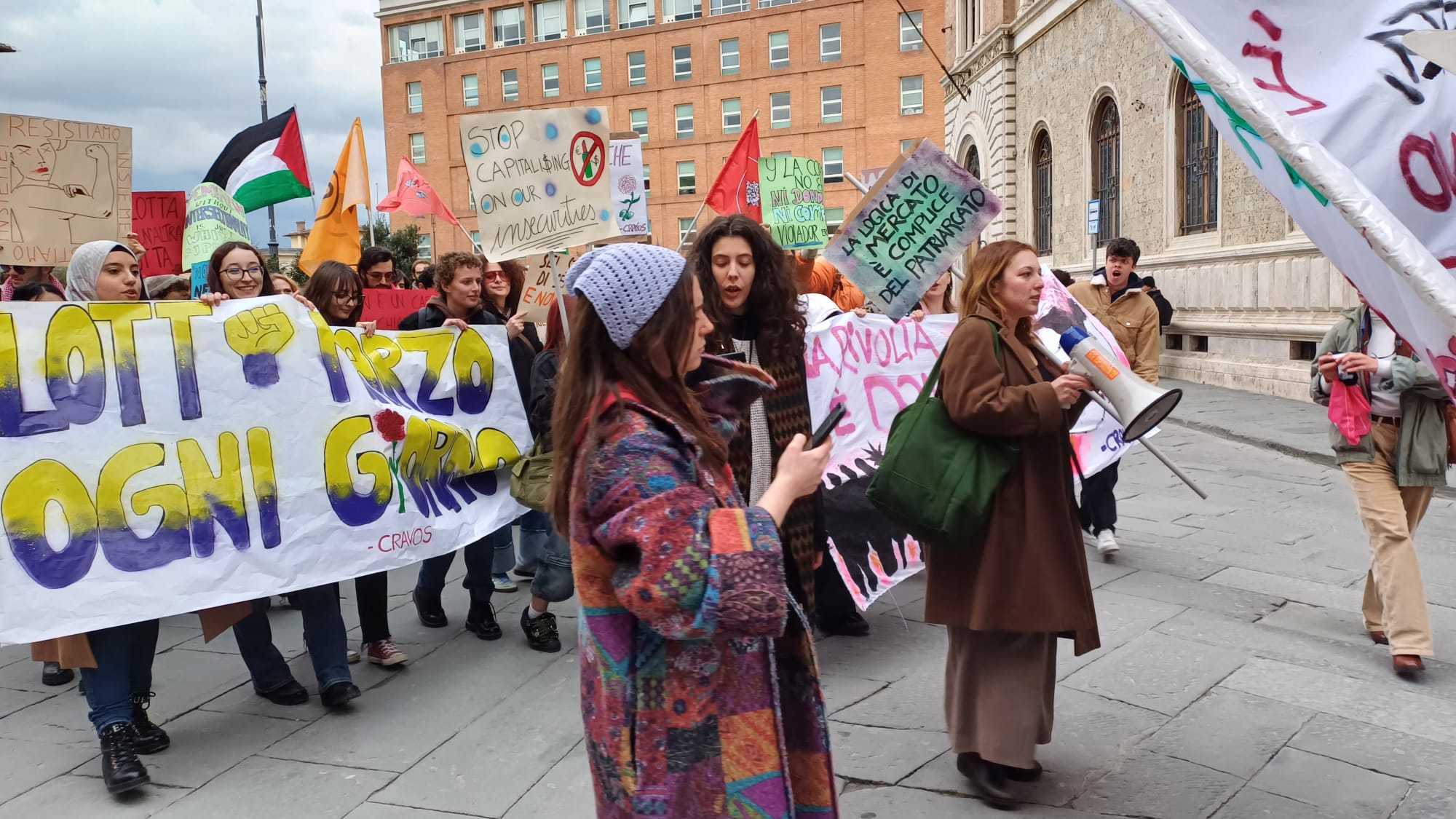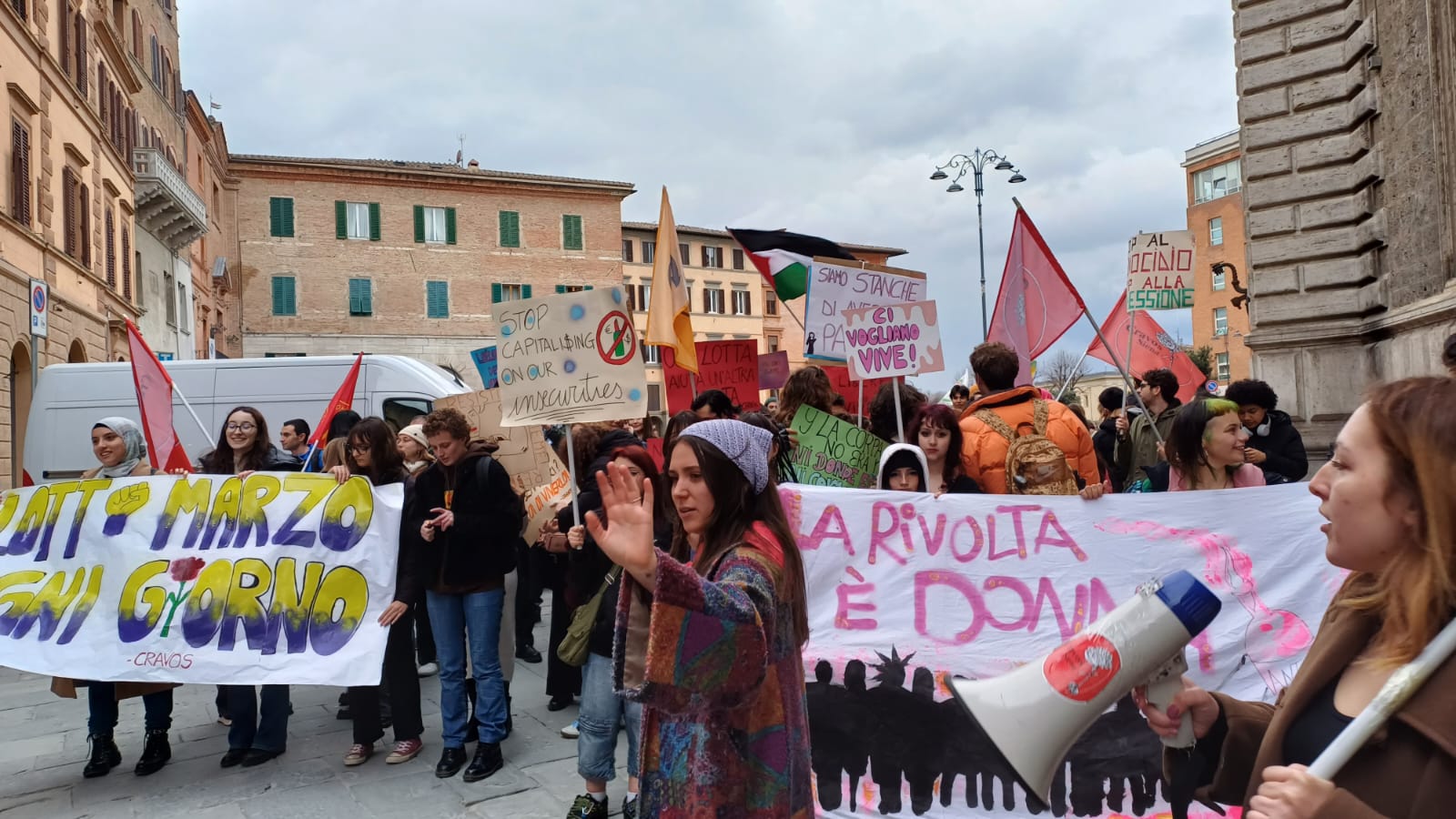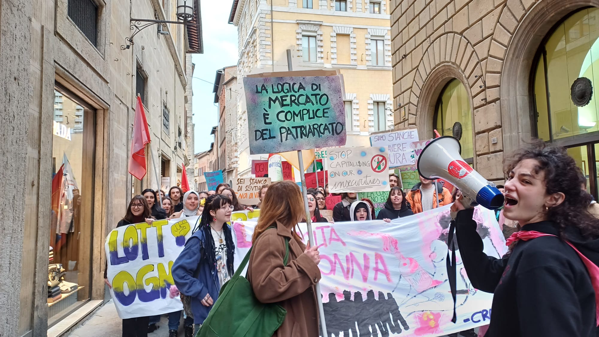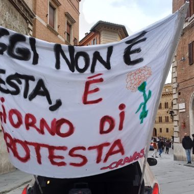 Dal contrasto alla violenza di genere, dalla precarietà del lavoro all’aborto. La Giornata Internazionale della donna diventa “lotto marzo” e anche a Siena ci sono state manifestazioni e cortei. Un corteo è stato organizzato da Link Siena, Frog e CAT con partenza di fronte alle Scotte di Siena, l’altro in contemporanea è stato organizzato da Cravos Siena ed è partito da piazza Matteotti. Tanti studenti e studentesse hanno partecipato al coro femminista contro la violenza patriarcale in tutte le sue forme. “E’ un rinnovo della lotta, noi ci siamo stancate di ricevere mimose e auguri. Non c’è niente da festeggiare. Abbiamo deciso di partire di fronte all’ospedale di Siena per due motivi – ha spiegato Francesca Parri (Collettiva Frog) – , il primo perchè siamo in periferia, ovvero una zona che non viene mai considerata. Il secondo perchè qui ci sono tante discriminazioni. Noi oggi portiamo in piazza tutte le rivendicazioni delle donne cis etero, trans e tutte quelle soggettività marginalizzate che vengono sempre discriminate all’interno degli ospedali per la mancata accessibilità e per le politiche di un governo che non riesce davvero a garantire tutti quei diritti che spettano alle donne”. Un corteo quello di Link Siena, Frog e CAT che ha attraversato Siena, passando dal ponte Caduti sul lavoro, Piazza del Sale, Piazza Salimbeni e infine i giardino della Lizza. Mentre l’altro, organizzato da Cravos, ha animato fin da subito le vie di Siena arrivando al Duomo. “Siamo qui oggi per ribadire che tanti progressi sono necessari in una società ancora troppo patriarcale- ha affermato Viola Rizzo (Cravos Siena) -, finchè ci saranno stupri, violenza, e servizi sanitari che non rispecchiano le nostre esigenze noi scenderemo in piazza”.