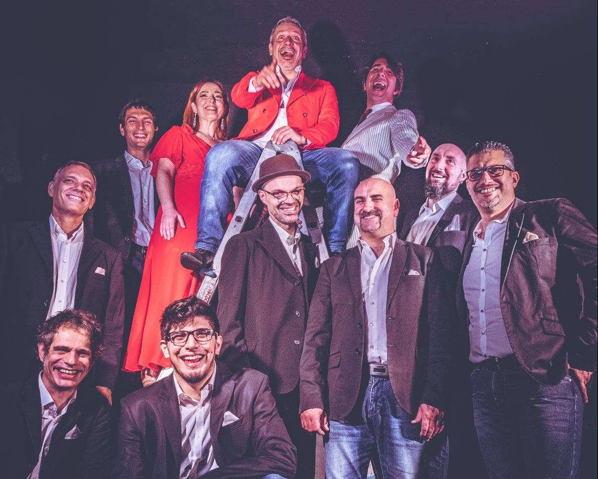 Questo gruppo di 10 musicisti più un presentatore è il più vivace, moderno e fiammeggiante alfiere della musica che ha recentemente superato il secolo di vita e che nelle sue origini vanta anche radici italiane: il jazz e lo swing da ballare. E cantano e ballano tutti o quasi, in questo 10tet. C’è un presentatore che non resiste alla tentazione di gettare via la cartellina con i titoli da leggere e trascina il pubblico sulle note di Cab Calloway, una cantante che rievoca tanto la swingante Ella Fitzgerald quanto le atmosfere fumose e sensuali di Jessica Rabbit, un chitarrista rubacuori che a tratti lascia la chitarra per incantare tutti con una voce à la Chet Baker. E ancora, la band di volta in volta invita sul palco chi voglia cimentarsi con i passi di tip tap di “Puttin’ On The Ritz” (magari rievocando la famosa scena di Frankenstein Junior), e infine lui – il direttore d’orchestra e arrangiatore – il clarinettista Nico Gori, capace di inanellare note impossibili a velocità supersoniche. La band presenterà il nuovo album “Swing in Classics”.