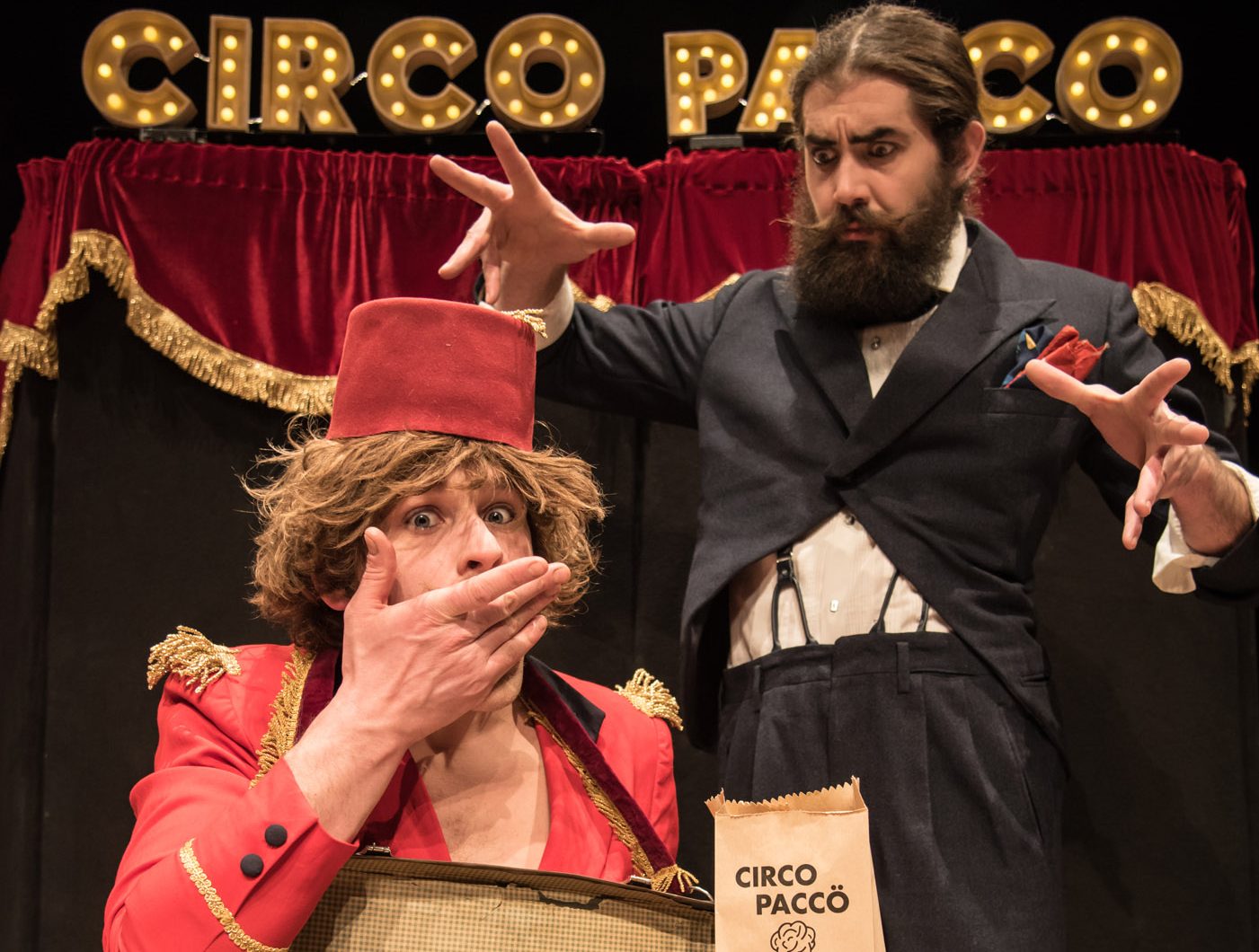 La rassegna prende il via sabato 14 gennaio alle ore 16.00 al Teatro Politeama di Poggibonsi. Sul palco della Sala maggiore la Compagnia CIRCO PACCO con lo spettacolo “PACCOTTIGLIA DELUXE: Cialtroneria di qualità superiore!” di e con Alessandro Galletti e Francesco Garuti che con questo spettacolo vincono il Premio Magnoberta (2013), il Milano Clown Festival (2014), il Clown&Clown Festival (2015) Paccottiglia Deluxe è una dissacrante e irriverente Visual Comedy, un punto di svista sul Circo, uno spettacolo clownesco in cui il mondo del Circo rivive in chiave parodistica grazie ai due personaggi: Frank Duro e Gustavo Leumann . Rifiutati dal “Nouve au Cirque” e radiati dal circo classico, ai due eccentrici figuri non resta che creare il proprio circo: il Circo Pacco. Nel tentativo di allestire il loro spettacolo cercano con ogni mezzo di guadagnarsi il centro della scena e accattivarsi il pubblico. A costo di prevaricarsi l’uno con l’altro si sfidano a colpi di numeri al limite della cialtroneria tra piogge di pop-corn, magia comica, sequenze di giocoleria e acrobatica eccentrica.