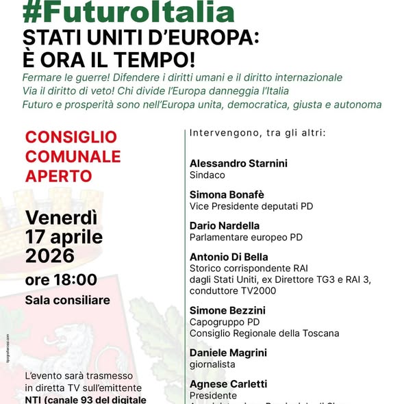 Il consiglio comunale aperto prenderà il via con i saluti del sindaco di Rapolano Terme, Alessandro Starnini, ed entrerà nel vivo con gli interventi del parlamentare europeo Dario Nardella, della deputata Simona Bonafè, del consigliere regionale della Toscana Simone Bezzini e della presidente della Provincia di Siena Agnese Carletti. Il dibattito sarà arricchito da un videomessaggio dell’ex presidente del Consiglio dei ministri, Enrico Letta, e dai contributi di Antonio Di Bella, storico corrispondente Rai dagli Stati Uniti ed ex direttore Tg3 e Rai 3, e del giornalista Daniele Magrini, autore del libro “Intelligenza artificiale e dazi. La guerra fredda di Trump all’Unione Europea”, edito Effigi e uscito nelle scorse settimane.