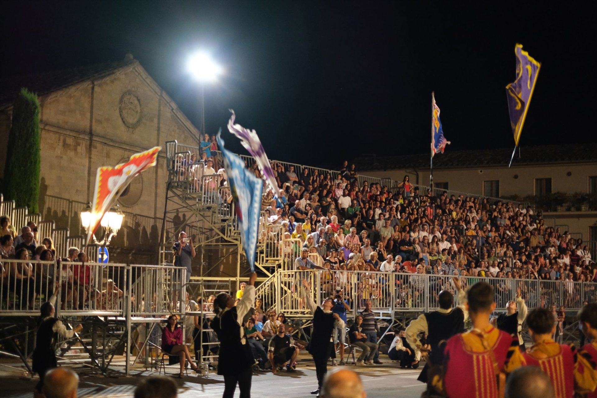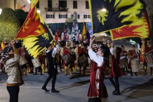 Al termine della serata uno spettacolo imperdibile: l’esibizione del Gruppo Sbandieratori e Tamburini della Giostra del Saracino.