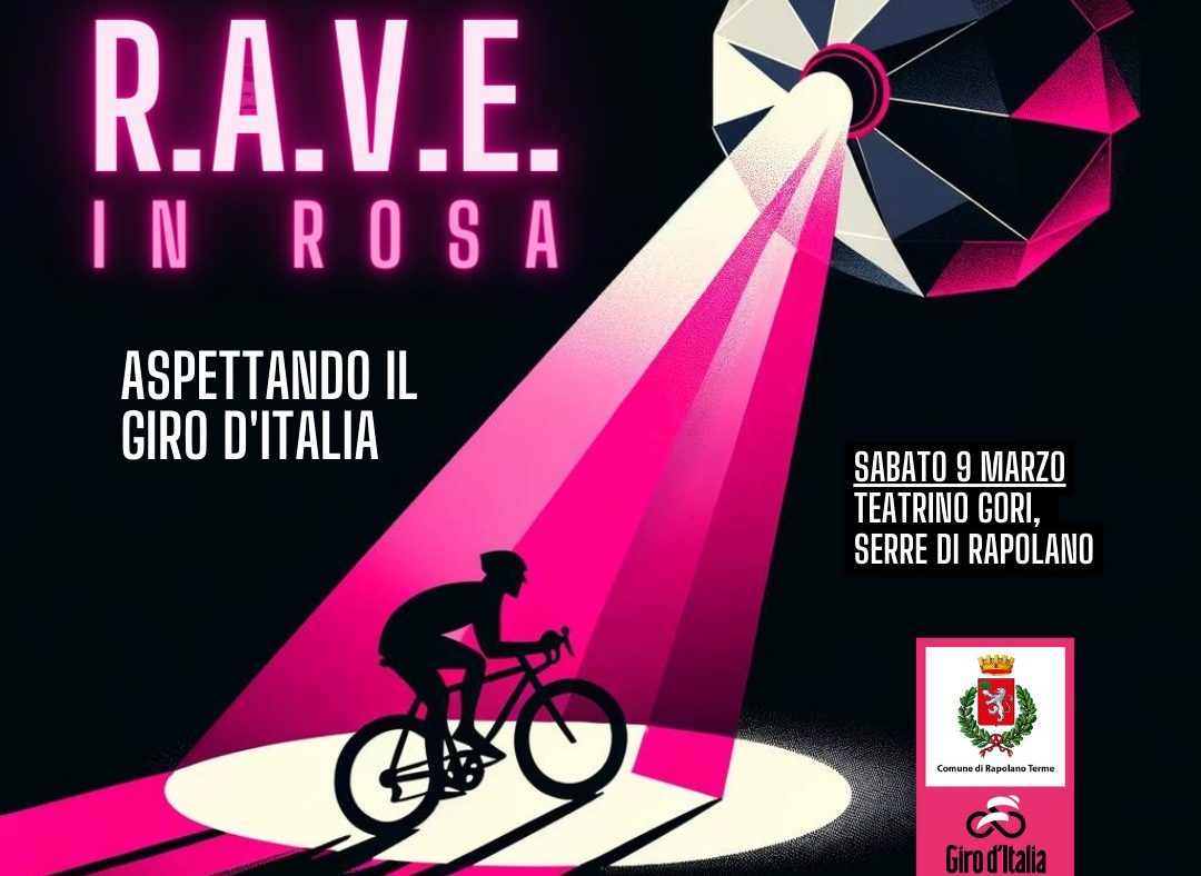 A 60 giorni dall’arrivo a Rapolano Terme della tappa del Giro d’Italia 2024, fissata per giovedì 9 maggio, l’Associazione TVSpenta organizza ‘R.A.V.E. in Rosa’ un evento che unisce passione sportiva, gastronomia e musica dal vivo. L’iniziativa è in programma stasera presso il Teatrino Gori Martini di Serre di Rapolano con l’organizzazione di TVSpenta e Comune di Rapolano Terme e il contributo del Consiglio Regionale della Toscana.