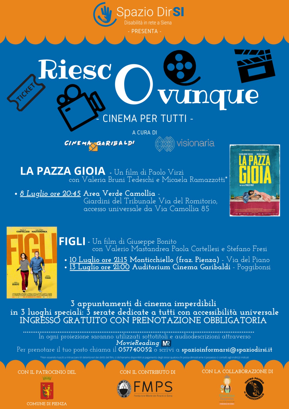 Spazio DirSI – Disabilità in rete a Siena- presenta la rassegna cinematografica Riesco Ovunque – Cinema per tutti – a cura dell’Associazione culturale Visionaria, partner della rete Spazio DirSI.