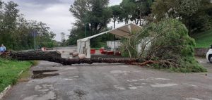 In via don Minzoni un albero è caduto su alcune auto in sosta e ha ostruito in parte una carreggiata. Nel piazzale del parcheggio della Mens sana il vento ha sradicato un grosso pino che è caduto lambendo la struttura dove vengono effettuati i tamponi.