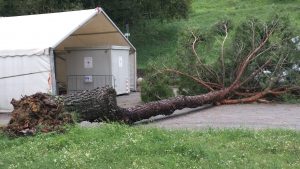 In via don Minzoni un albero è caduto su alcune auto in sosta e ha ostruito in parte una carreggiata. Nel piazzale del parcheggio della Mens sana il vento ha sradicato un grosso pino che è caduto lambendo la struttura dove vengono effettuati i tamponi.