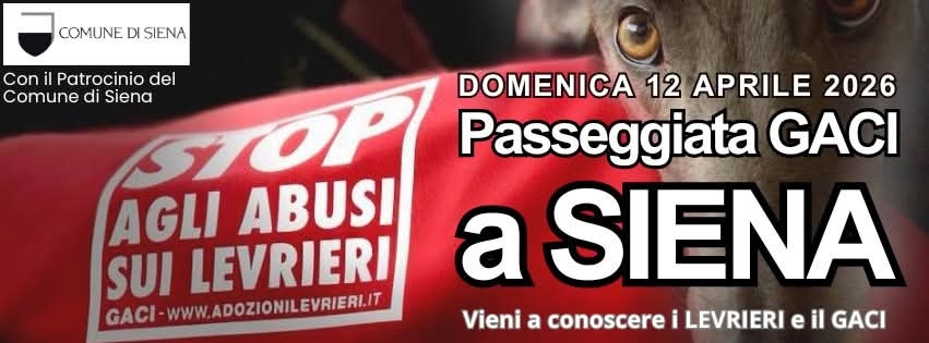Una passeggiata per salvare i levrieri. Già il titolo stuzzica la curiosità, ma se l’evento viene organizzato nella tua Città, allora l’interesse nasce spontaneo. Stiamo parlando dell’iniziativa messa in piedi dal GACI (Greyhound Adopt Center Italy), un’organizzazione di volontariato che si occupa da 24 anni del recupero, del salvataggio e delle adozioni dei levrieri di razza Greyhound (provenienti dall’Irlanda), dei levrieri di razza Galgo (provenienti dalla Spagna) e dei Podenco (Spagna). Questi cani sono considerati nei Paesi di origine come animali da reddito e non come pets: i primi sono sfruttati nel mondo delle corse (racing e coursing), mentre galgo e podenco sono sfruttati per la caccia. L’Associazione nasce nel 2002, a seguito del fallimento e della chiusura del Cinodromo di Roma, con 370 greyhounds presenti nella struttura che sono stati poi adottati.