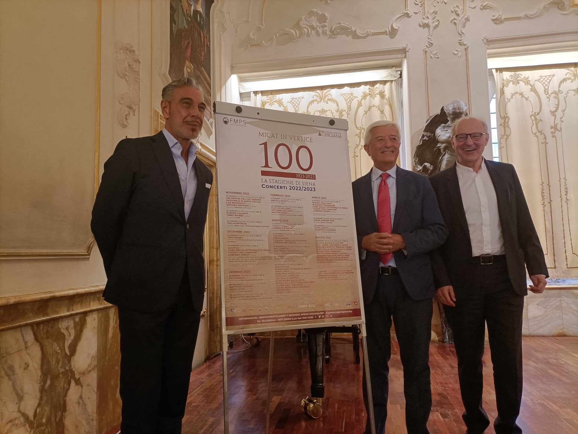 “Il raggiungimento del centenario della Micat In Vertice – dichiara Angelo Armiento, Direttore Amministrativo dell’Accademia – è motivo di grande orgoglio non solo per la Chigiana, ma per la città di Siena e per il mondo musicale intero. Il cartellone 2022-2023, che si svolgerà all’interno dei teatri cittadini, grazie alla preziosa collaborazione del Comune di Siena cui va il nostro ringraziamento, sarà più che mai reso accessibile a tutte le fasce di pubblico, grazie alle offerte speciali per abbonati, giovani e studenti, in modo da continuare nell’opera di divulgazione della grande musica, come nella mission istituita dal fondatore, consolidando la consuetudine a vivere gli spazi di socialità cittadina che sono indispensabili per formare una vera comunità”.