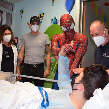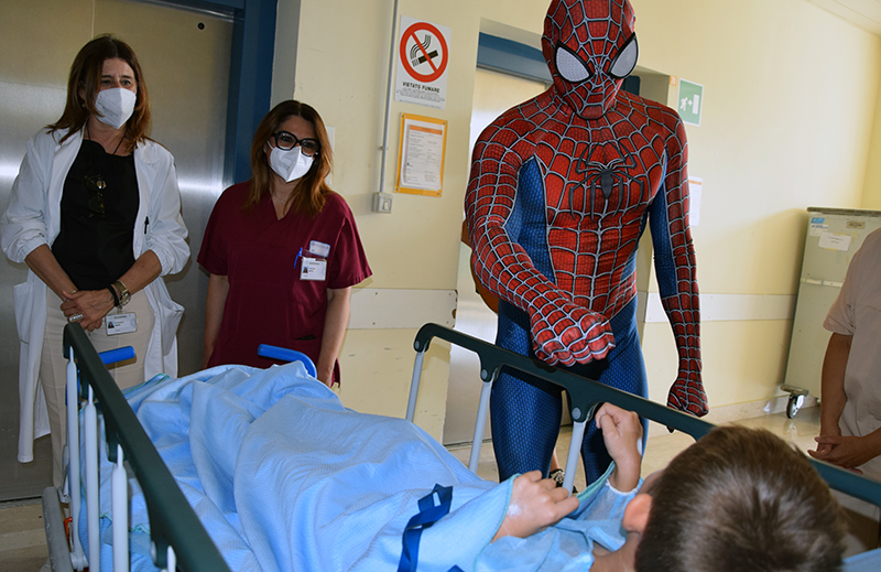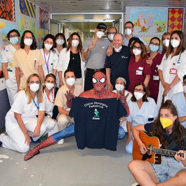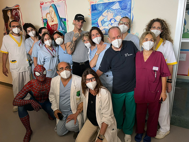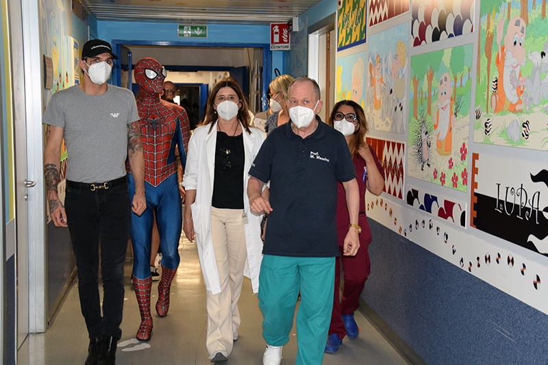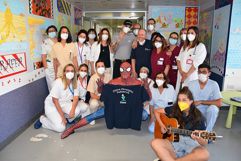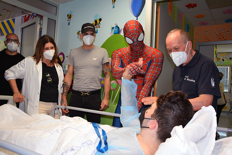 Ad accompagnare Achille Lauro, Mattia Villardita, il “supereroe di corsia” che, vestito da Spiderman, regala sorrisi e porta gioia ai bimbi malati di tutta Italia, e la cantautrice Raele. Non una prima volta per Achille Lauro e Mattia Villardita, da tempo protagonisti di queste belle iniziative di solidarietà negli ospedali italiani: di grande impatto l’umanità e la sensibilità di un cantante come Achille Lauro, così come è toccante l’esperienza umana del Cavaliere Villardita, titolo conferitogli dal presidente della Repubblica Sergio Mattarella, proprio per le sue visite benefiche nelle pediatrie italiane, dopo un’infanzia segnata della malattia e da lunghe degenze all’ospedale Gaslini di Genova. Achille Lauro e Mattia Villardita, accompagnati dalla dottoressa Francesca De Marco, direttore sanitario dell’Aou Senese, hanno visitato diversi reparti di degenza all’interno del Dipartimento della Donna e dei Bambini, diretto dal professor Mario Messina: Chirurgia pediatrica, diretta sempre dal professor Messina; Terapia Intensiva Neonatale, diretta dalla dottoressa Barbara Tomasini e Pediatria, diretta dal professor Salvatore Grosso. Inoltre la visita ha interessato anche il reparto di Neuropsichiatria Infantile diretto dal dottor Roberto Canitano, all’interno del Dipartimento di Salute Mentale e Organi di Senso diretto dal professor Andrea Fagiolini.