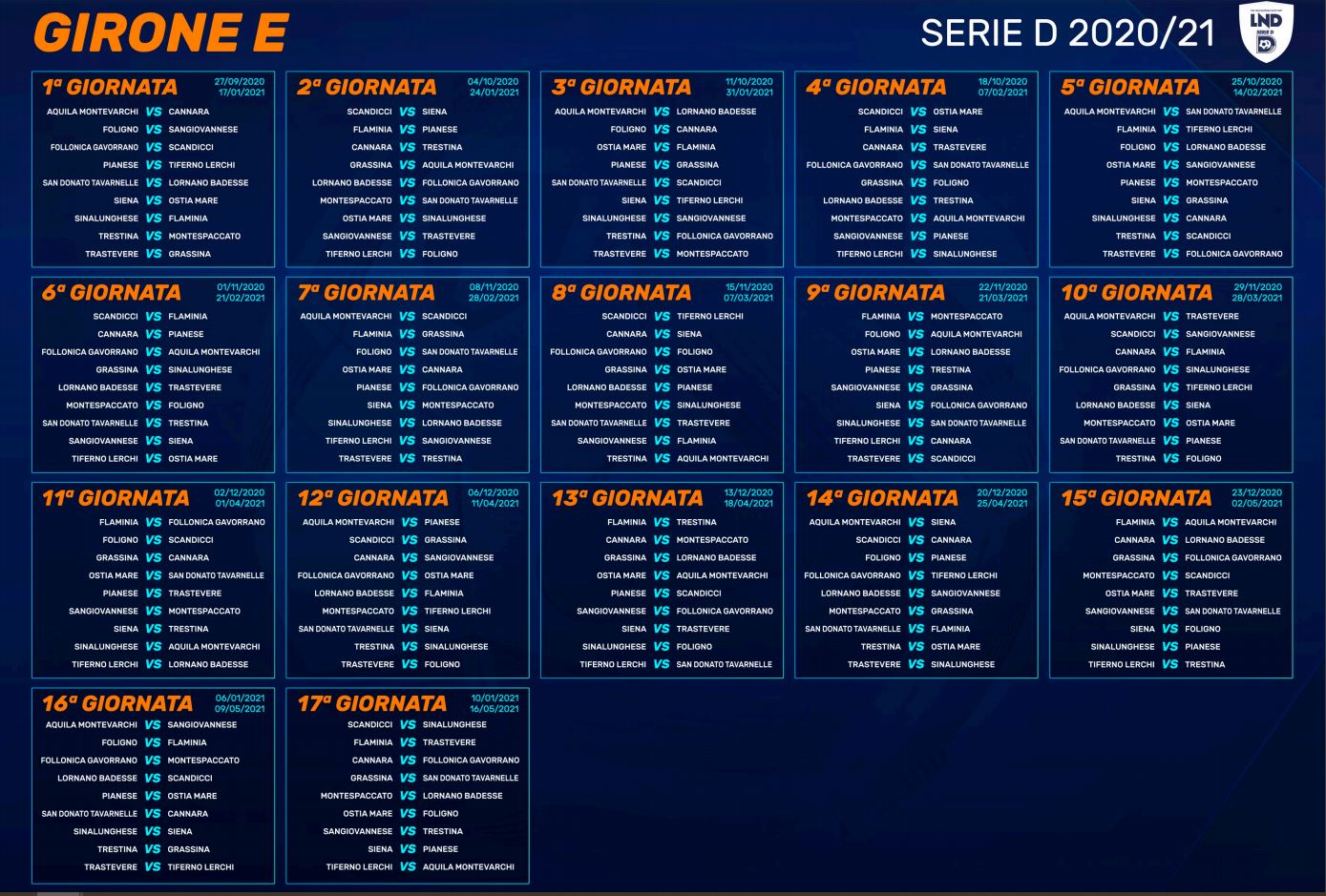 Si è ufficialmente concluso il ritiro del Siena Calcio. Sulla pagina facebook la Lega Nazionale Dilettanti sta svelando il campionato di Serie D per la stagione 2020-2021. Il primo impegno dell’Acn Siena 1904 sarà in casa domenica 27 settembre contro Ostia Mare.