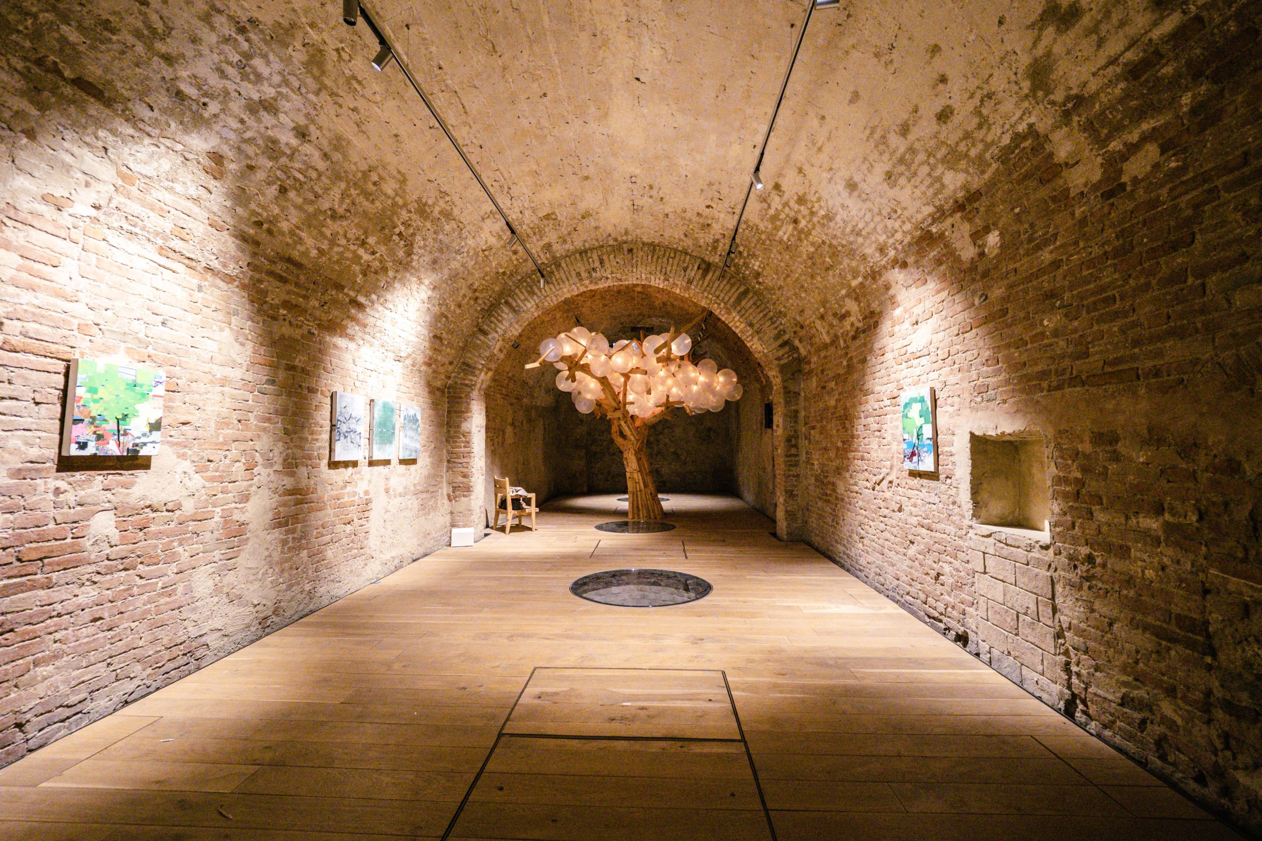 Sotto lo sguardo preparato e generoso della curatrice Raphaëlle Blanga – rinomata esperta di arte contemporanea a livello internazionale – abbiamo invitato Hashimoto a visitare il Santa Maria, ad attraversare le sue architetture profonde, ad ascoltarne le stratificazioni. Da quel tempo di immersione e ascolto è nata Path to the Sky, una grande installazione site-specific concepita per la Corticella e una mostra che si dispiega lungo l’antica strada interna: un flusso silenzioso che si innalza dalla pietra fino alla luce, aprendosi verso il cielo.