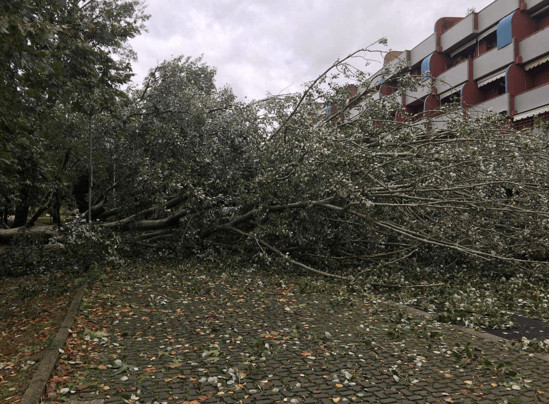 Alcuni alberi di grossa dimensione sono crollati a terra a San Miniato, in via Oreste Lizzadri, per via del persistente maltempo.