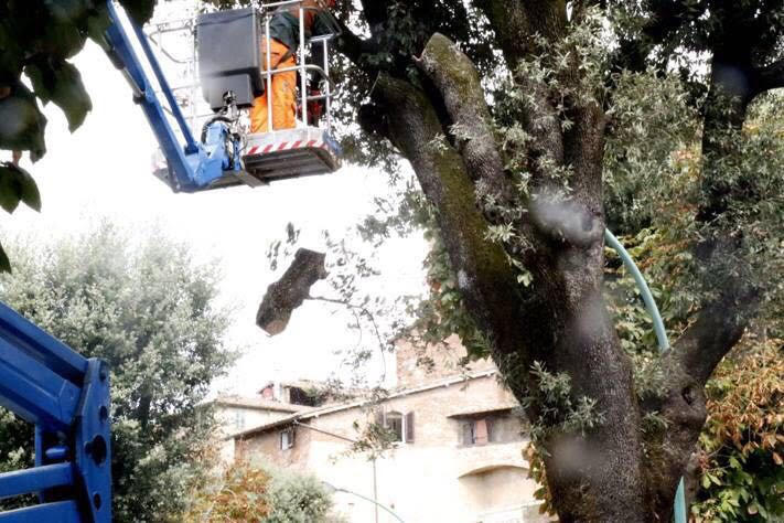 In corso nella giornata di oggi le verifiche sul leccio in Viale Diaz che da tempo si trova sotto l’attenzione degli addetti del Comune per motivi di sicurezza. Gli addetti del Comune e i Vigili del fuoco stanno controllando se tagliare l’albero e questo non sarebbe il primo della zona. Nel giro di cento metri dall’arco di Fontegiusta infatti questo sarebbe il quinto albero a venir tagliato per motivi di sicurezza, al momento però nessuno degli altri quattro alberi sono stati ripiantati.
