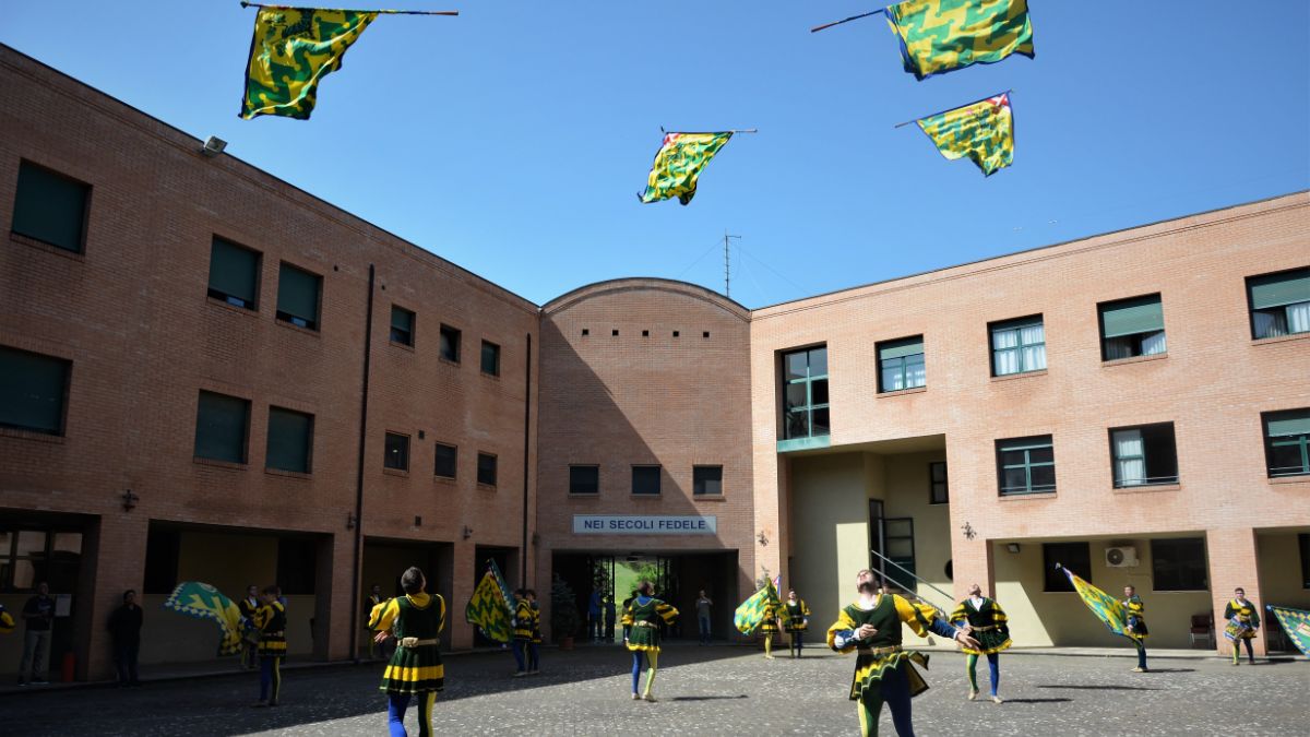 Ad accogliere il Rettore Gianni Morelli con la Comparsa e i componenti della dirigenza della Contrada, il Comandante Provinciale Colonnello Nicola Ferrucci, gli Ufficiali e i militari della sede. Al termine della tradizionale sbandierata di omaggio c’è stato un momento conviviale culminato con uno scambio di doni.