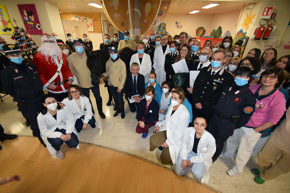 Bellissima e piacevole sorpresa per i piccoli pazienti ricoverati nel Dipartimento della Donna e dei bambini e in Neuropsichiatria infantile. All’Azienda ospedaliero-universitaria Senese è infatti arrivato un Babbo Natale speciale dei Carabinieri, insieme ad un cavallino di Monterufoli, per portare doni e sorrisi a tutto l’ospedale. L’iniziativa è stata organizzata dall’Arma dei Carabinieri, in tutte le sue articolazioni, territoriale e forestale.