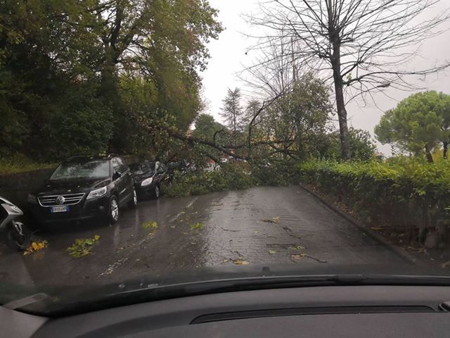 Si registrano altri grossi alberi crollati sulla strada dopo la violenta tempesta, sia in viale Bracci che in viale Cadorna e alla Tognazza.