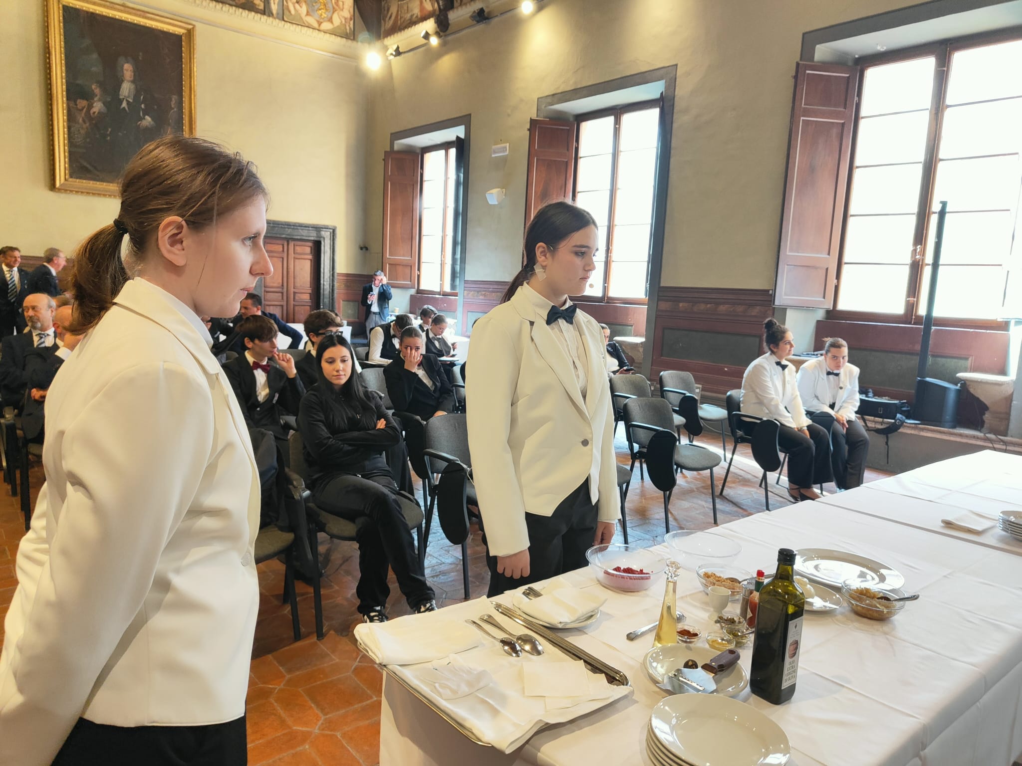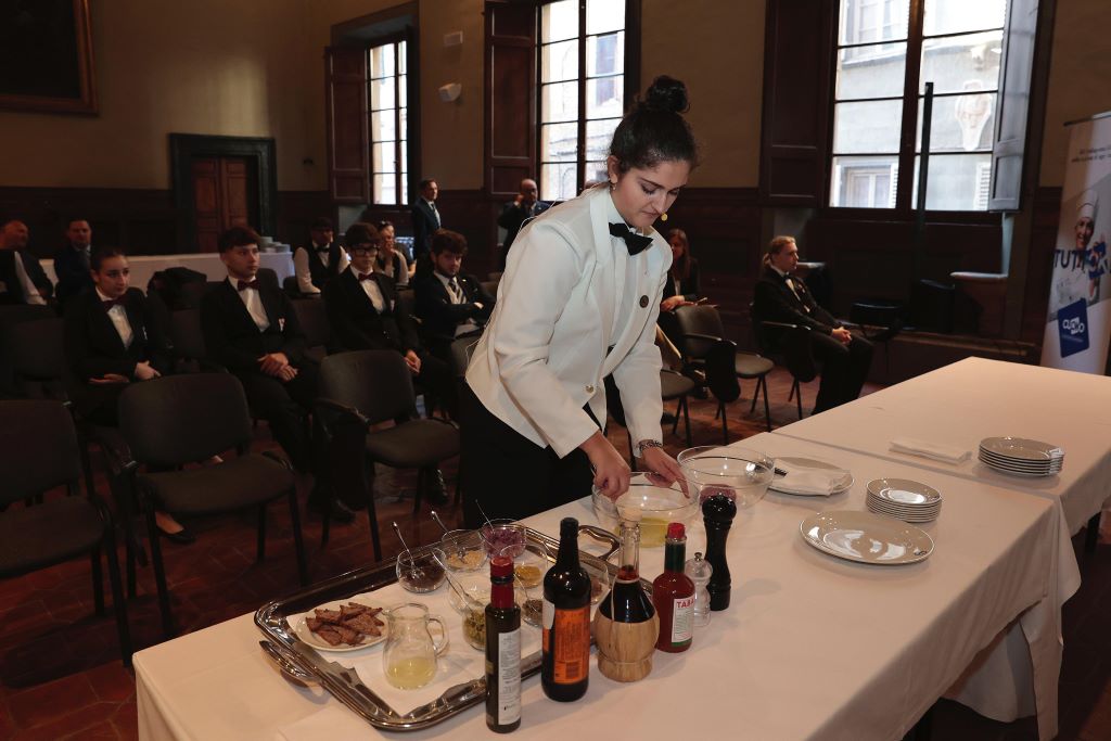 Ma quali erano le scuole coinvolte? Questa mattina in palazzo Patrizi c’erano studenti degli Istituti alberghieri ’”Artusi” di Chianciano Terme, “Ricasoli” di Colle val d’Elsa, “Fanfani-Camaiti” di Caprese Michelangelo, Vegni” di Capezzine, “Martini” di Montecatini terme, Isis Enriques di Castelfiorentino, Leopoldo di Lorena di Grosseto. A valutarli, una giuria di 6 membri: il Presidente nazionale Amira Valerio Beltrami, Simona Cancelloni (Cancelloni Food service), Graziano Costantini (Camera di Commercio Arezzo Siena), Andrea Zingarelli (Rocca delle Macie), Stefano Mecocci (Chiantimutua), Andrea Guerrini (chef Hotel Garden). Dalla loro valutazione, a fine mattinata è uscito il verdetto che ha premiato in particolare la giovane Federica Di Napoli, allieva dell’Istituto Martini di Montecatini terme, risultata prima classificata.