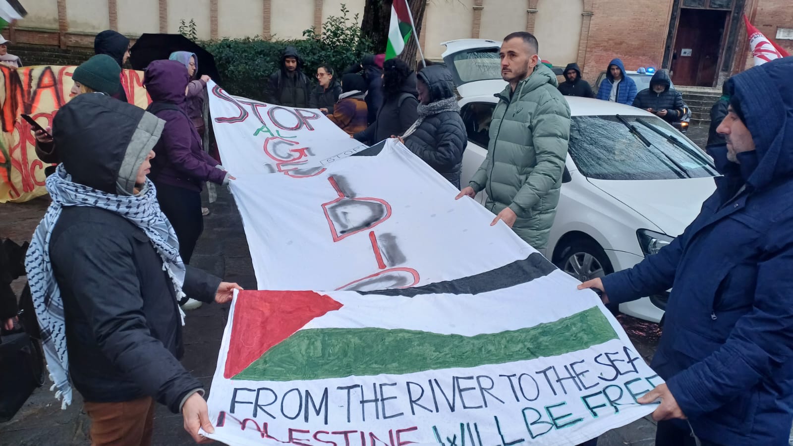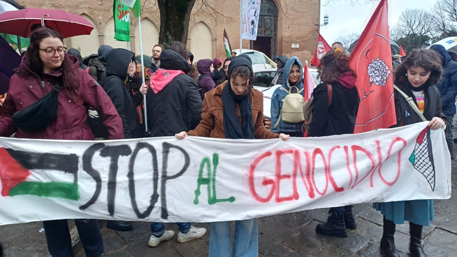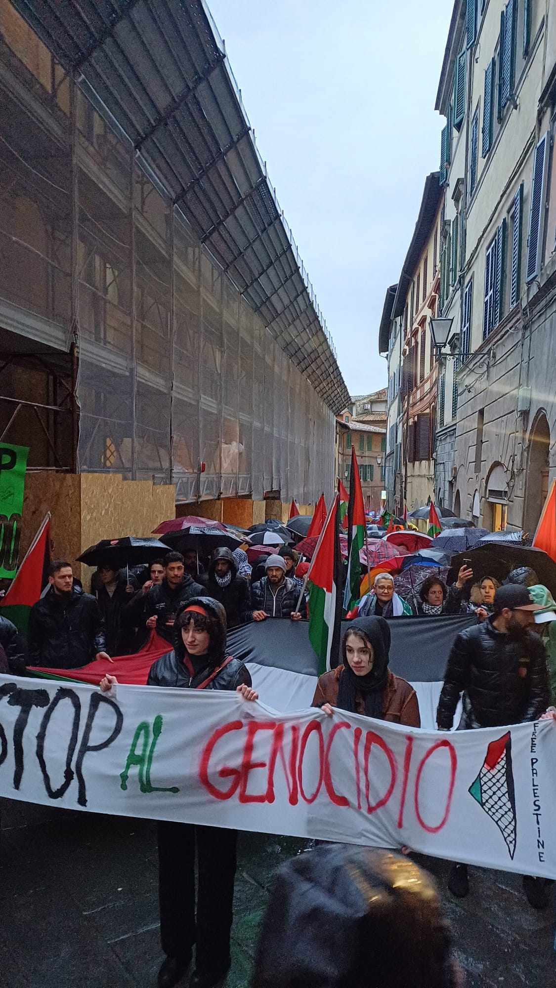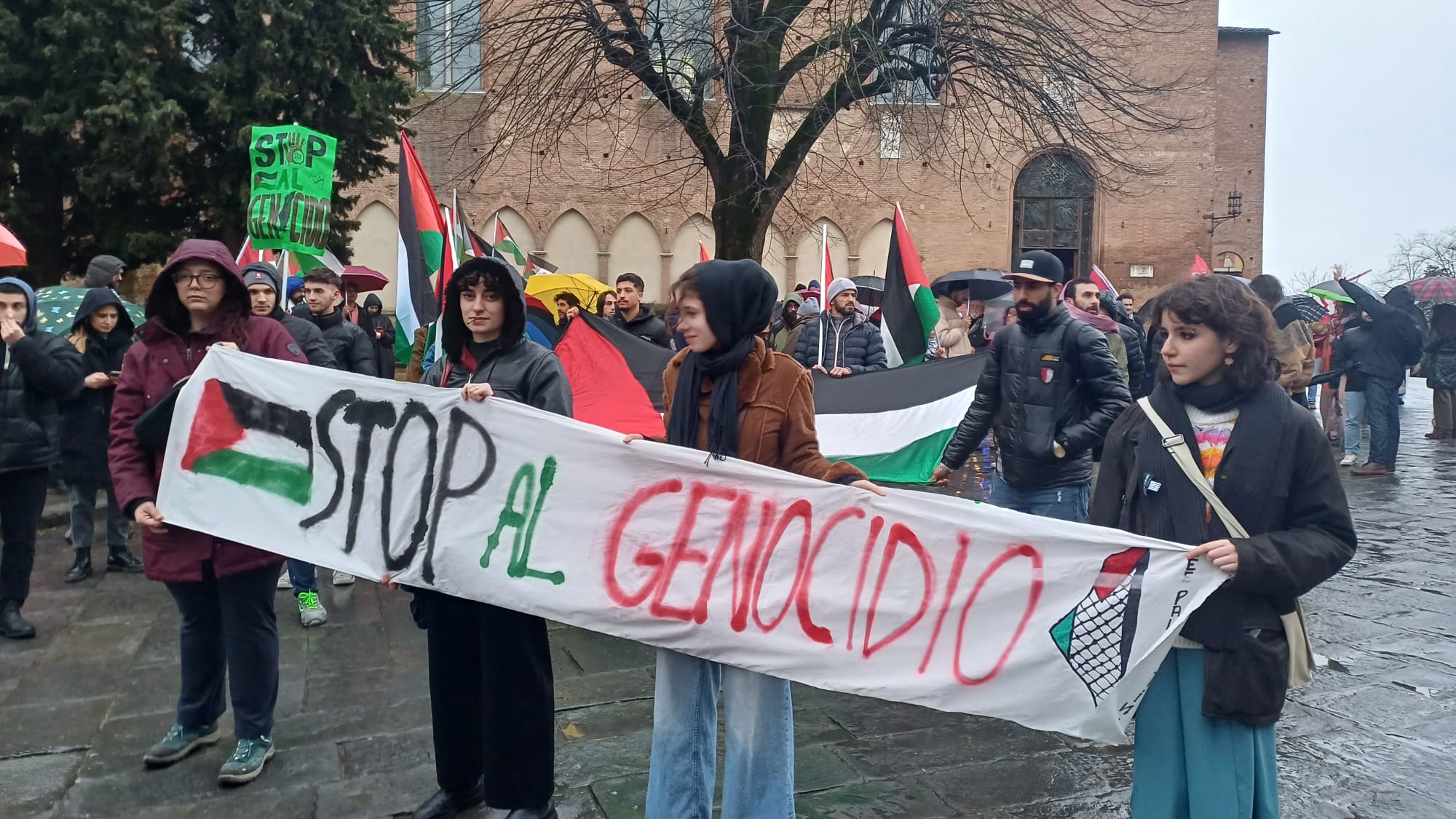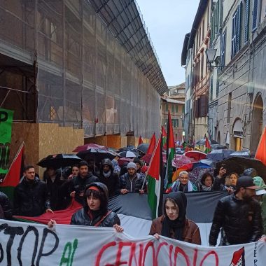 “Palestina libera”, “From the river to the sea Palestina will be free”, gridano lungo le vie della città. Il corteo pro Palestina è partito da piazza San Domenico ed è arrivato pacificamente senza tensioni in piazza Tolomei, a differenza di quanto è avvenuto a Firenze e Pisa dove la polizia ha caricato i manifestanti. In più di duecento hanno partecipato al corteo organizzato dal Comitato Palestina Siena. I manifestanti hanno fatto sentire la loro voce e espresso il loro dissenso con striscioni con su scritto: “Stop al genocidio”, “Palestina chiama Siena risponde”. “Siamo ancora una volta scesi in piazza perché quello che sta avvenendo è un genocidio, non ci vergogniamo a dirlo – ha affermato Laila Mourabi (Comitato Palestina Siena) -, noi non ci fermiamo di fronte alle ingiustizie che stanno avvenendo. E’ una vergogna come le istituzioni che dovrebbero difenderci ci vengono contro. Adesso siamo noi ad avere paura”. “Quello che è accaduto oggi è l’ennesima dimostrazione che la repressione e le manganellate ci sono anche nel nostro Paese – ha aggiunto Samuele Picchianti (Comitato Palestina Siena) – esprimiamo piena solidarietà alla comunità fiorentina e pisana ingiustamente attaccata”.