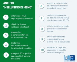 L’Asl Toscana sud est aderisce alle iniziative della 18° edizione della Giornata Nazionale del Risparmio Energetico e degli stili di vita sostenibili in programma domani, ideata e promossa dalla trasmissione radiofonica Caterpillar di RAI Radio 2 con Rai per il Sociale.