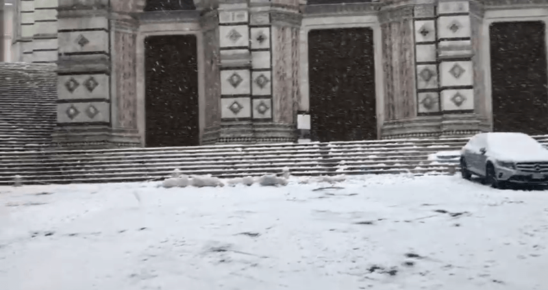 Continua a nevicare copiosamente a Siena. Dalle 8 -8.30 è tornata ad abbattersi una bufera di neve sulla città, che è sempre più ricoperta di neve.