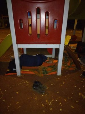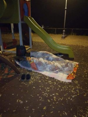 Si accampano nel parco, con giacigli di fortuna, dormono sulle panchine o dentro ai giochi dei bambini. E passano così la notte, come testimoniano le foto che circolano sui social.