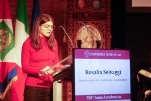 Apertura anno accademico Università di Siena, a prendere la parola è stata anche la rappresentante delle studentesse e degli studenti Rosalia Selvaggi, che non usa mezze misure e parla, davanti alla magistrale platea, con un tono critico riguardo alla poca attenzione verso gli studenti e al poco tempo loro concesso.