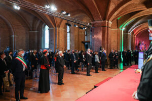 Città blindata, è sono presenti alla cerimonia anche il segretario nazionale del Pd Enrico Letta. Ad accogliere Mattarella il sindaco di Siena Luigi De Mossi insieme al presidente della Regione Toscana Eugenio Giani e al presidente della Provincia di Siena Silvio Franceschelli.