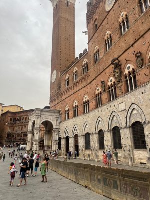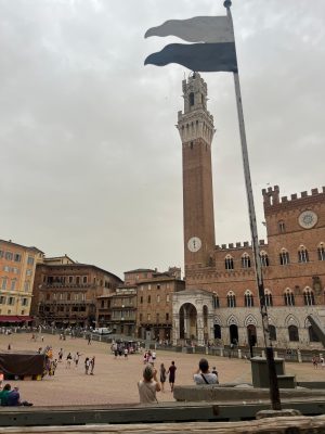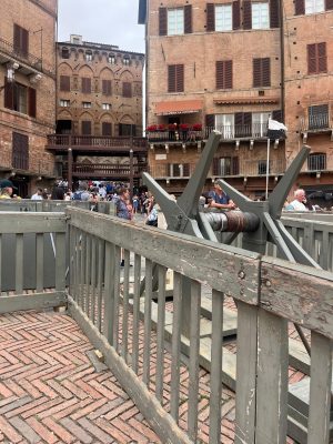 Un momento sempre emozionante per i contradaioli e i senesi, visto che la Piazza inizia a “vestirsi” a festa in vista dei giorni di Palio e della Carriera, in attesa della posa del tufo.