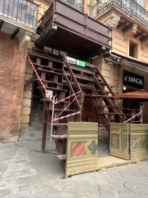 Si inizia a respirare aria di Palio a Siena. Questa mattina i tecnici comunali hanno provveduto alle operazioni di montaggio dei primi palchi, steccati e varchi per le uscite di sicurezza.