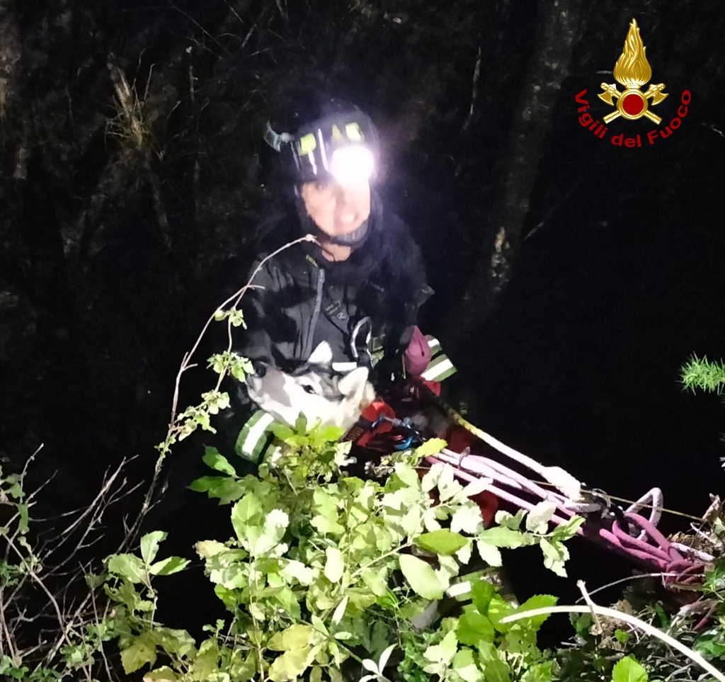 I Vigili del fuoco del comando di Siena sono intervenuti questa notte intorno alle ore 00.30 nel Comune di Asciano, per il recupero di un cane caduto da un’altezza di circa 10 metri all’interno di una cava di travertino non più in uso.