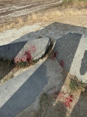 “Questa notte è stato danneggiato il Sito Transitorio a Leonina, con quella che all’apparenza è una sostanza colorante.