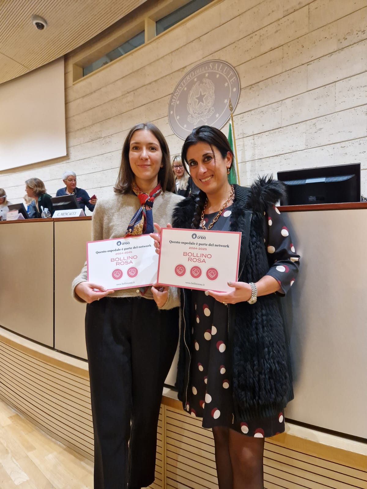 Fondazione Onda ha assegnato i Bollini Rosa per il biennio 2024-2025 agli ospedali che offrono servizi dedicati alla prevenzione, diagnosi e cura delle principali patologie che riguardano l’universo femminile, ma anche quelle che riguardano trasversalmente uomini e donne in ottica di genere. La premiazione è avvenuta in una cerimonia svoltasi presso il Ministero della Salute. La valutazione delle strutture ospedaliere e l’assegnazione dei Bollini Rosa è avvenuta tramite un questionario di candidatura composto da circa 500 domande, ciascuna con un valore prestabilito, suddivise in 15 aree specialistiche più una sezione dedicata ai servizi generali per l’accoglienza delle donne e una alla gestione dei casi di violenza sulle donne e sugli operatori sanitari.