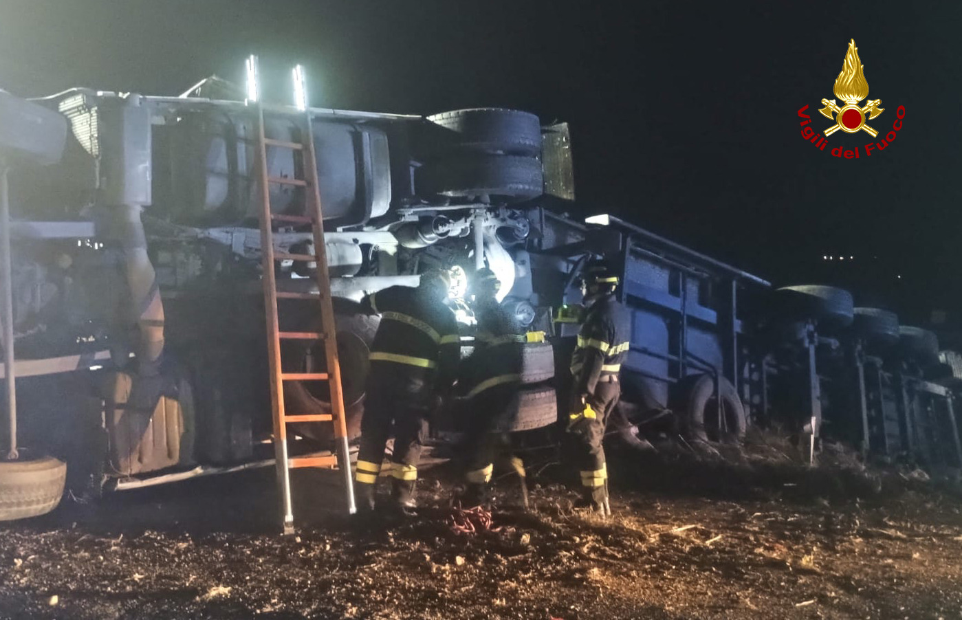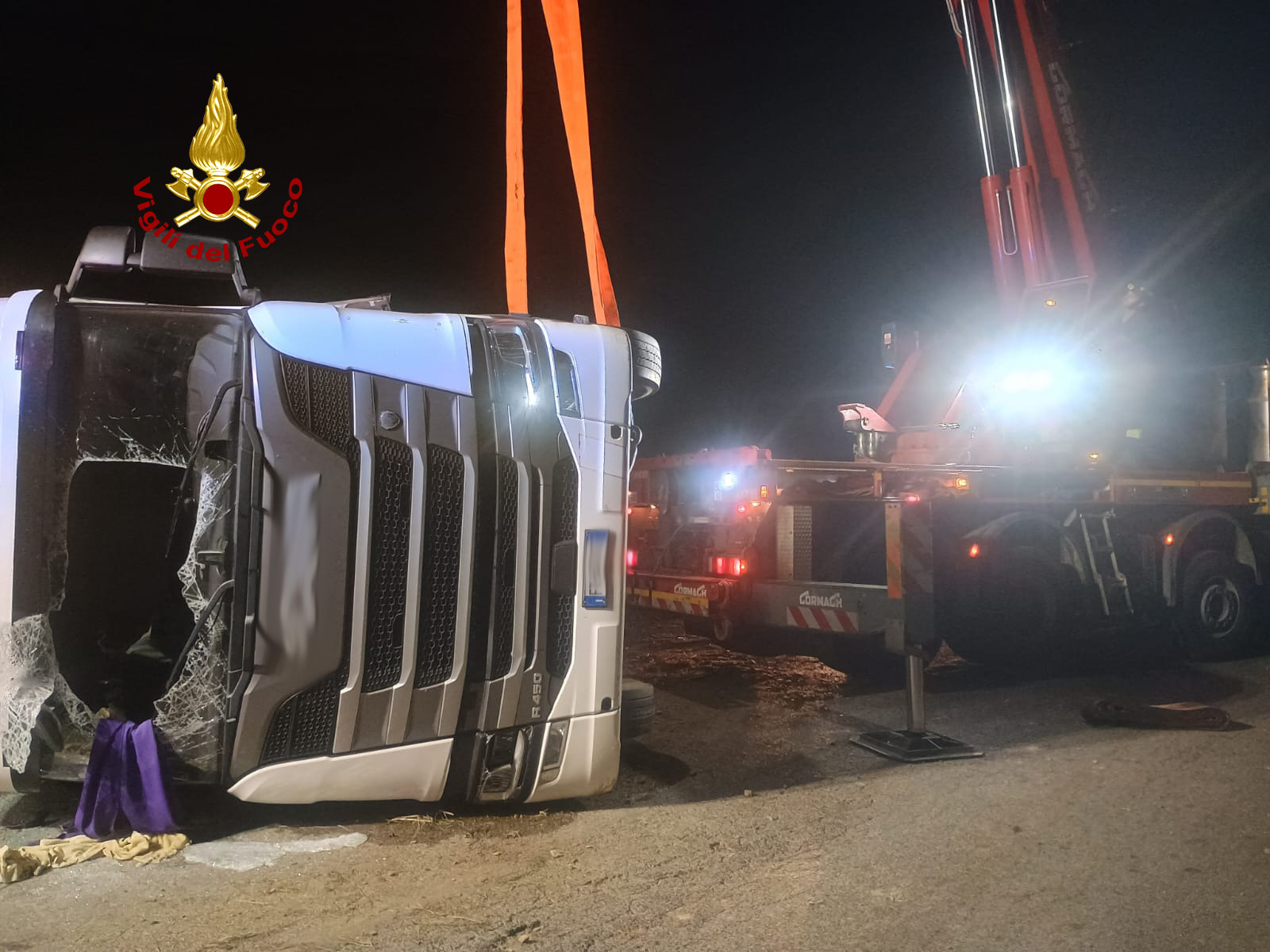 Intervenuta in supporto della squadra VF anche l’autogru per la rimozione dell’autoarticolato che invadeva una corsia di marcia.