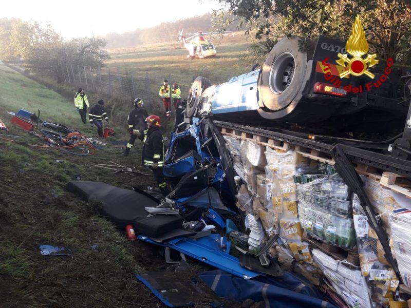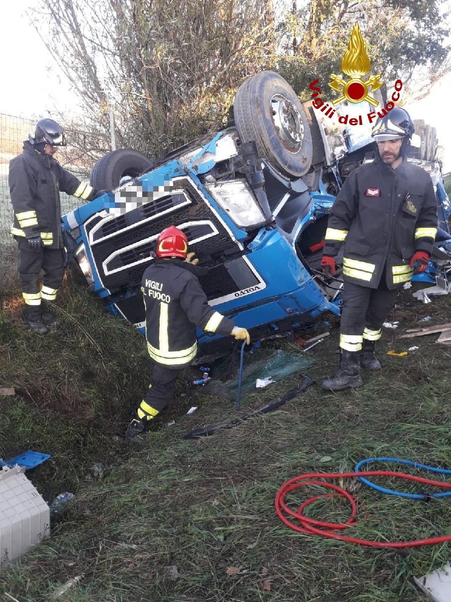 Il conducente del mezzo pesante, di 39 anni, è rimasto incastrato all’interno della cabina che si è schiacciata. I vigili del fuoco del comando di Siena, distaccamento di Montepulciano, sono intervenuti con 3 automezzi di cui una autogru e un polisoccorso inviata da Siena e 8 unità, al termine di un complesso lavoro durato un’ora e mezzo, per allontanare le lamiere e alleggerire il peso del mezzo e carico sulla cabina, ha estratto l’uomo in vita ma con gravi ferite, e affidato immediatamente al personale medico del 118, il quale dopo la stabilizzazione sanitaria lo ha trasportato in elisoccorso al pronto soccorso dell’ospedale le Scotte di Siena. Sul posto è giunta anche la Polizia.