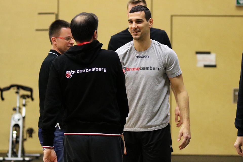 Al primo allenamento tedesco Banchi ha potuto ritrovare due suoi ex giocatori in maglia senese, Daniel Hackett e Nikos Zisis, con cui ha vinto molti titoli, negli anni come vice e capo coach, e condiviso molte gioie. Sul parquet sorrisi e calorosi abbracci tra i tre.