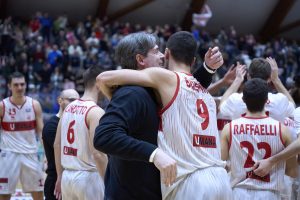 “Non avevamo dubbi sul fatto che la partita con Trapani sarebbe stata combattuta. Siccome sono stato tante volte dall’altra parte, mi sento di fare i complimenti ai siciliani per la prestazione orgogliosa. Per quanto riguarda noi coroniamo un sogno inaspettato. Ho sempre definito questa la stagione del “quasi” e invece siamo riusciti ad entrare nei playoff e ci vogliamo godere questo momento. Nelle difficoltà, durante la stagione, ci siamo spesso disuniti; nella seconda fase invece abbiamo ritrovato compattezza e questa partita lo ha dimostrato perché, onestamente, sul 68-61, anche io dalla panchina ho pensato che la partita fosse andata. Invece i ragazzi hanno profuso un ulteriore sforzo, hanno alzato il livello credendoci più di chiunque altro. Vero che Trapani ha commesso alcuni errori ma questi fanno parte della vita e del gioco; forse noi avevamo qualche rotazione in più e di conseguenza siamo arrivati agli ultimi cinque minuti con più energia ma ci aspettavamo una partita di questa portata da parte dei nostri avversari.