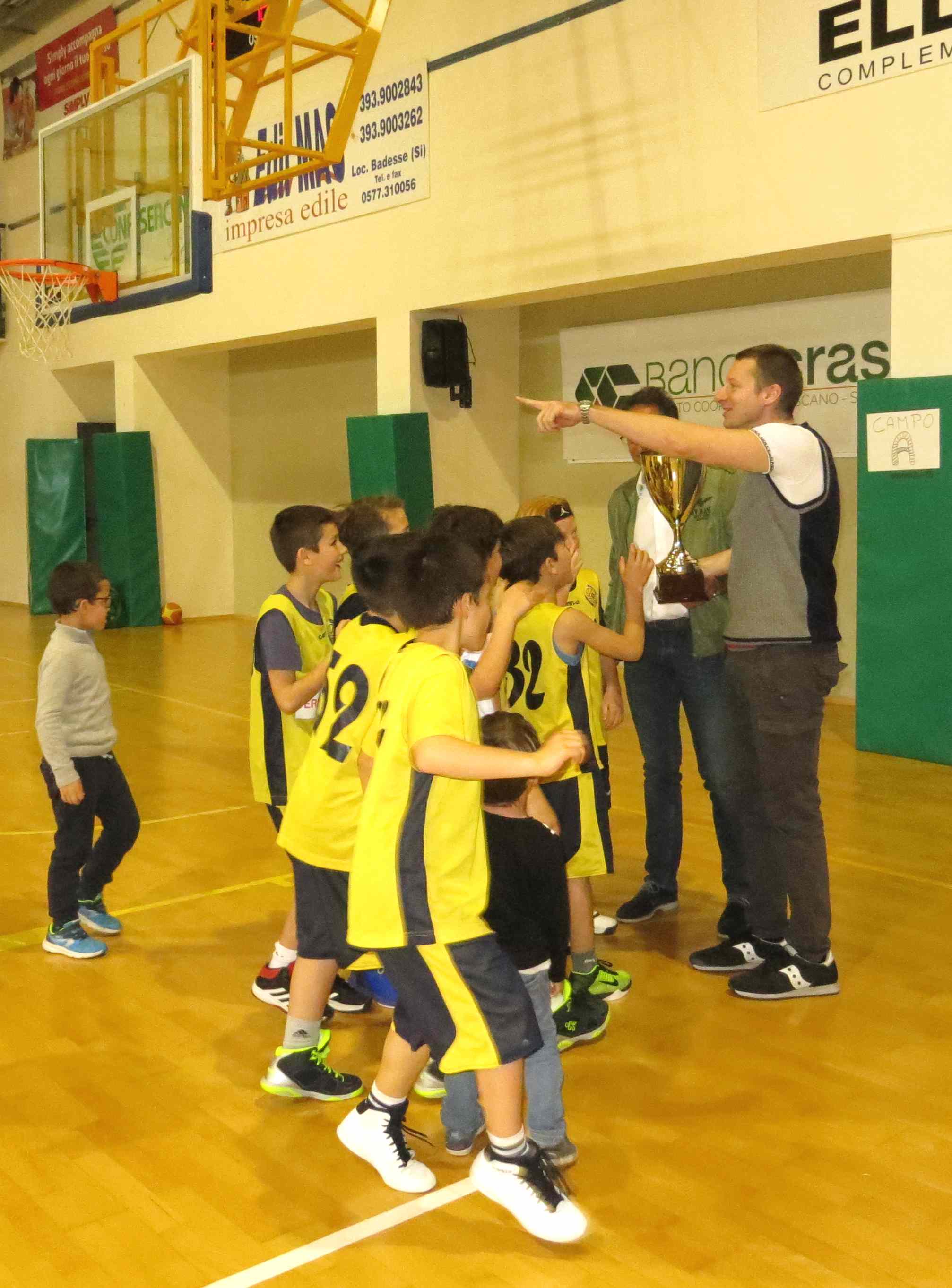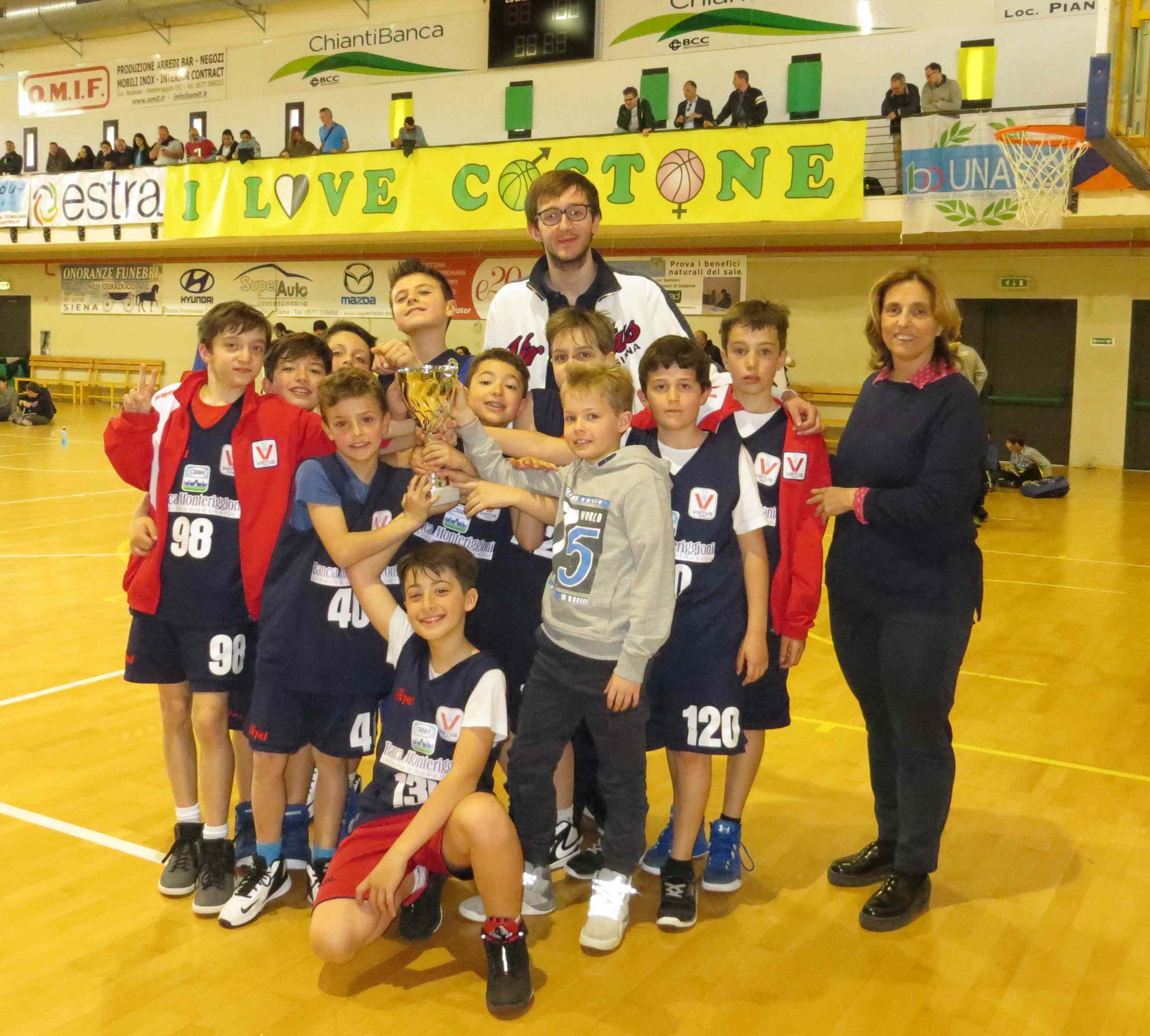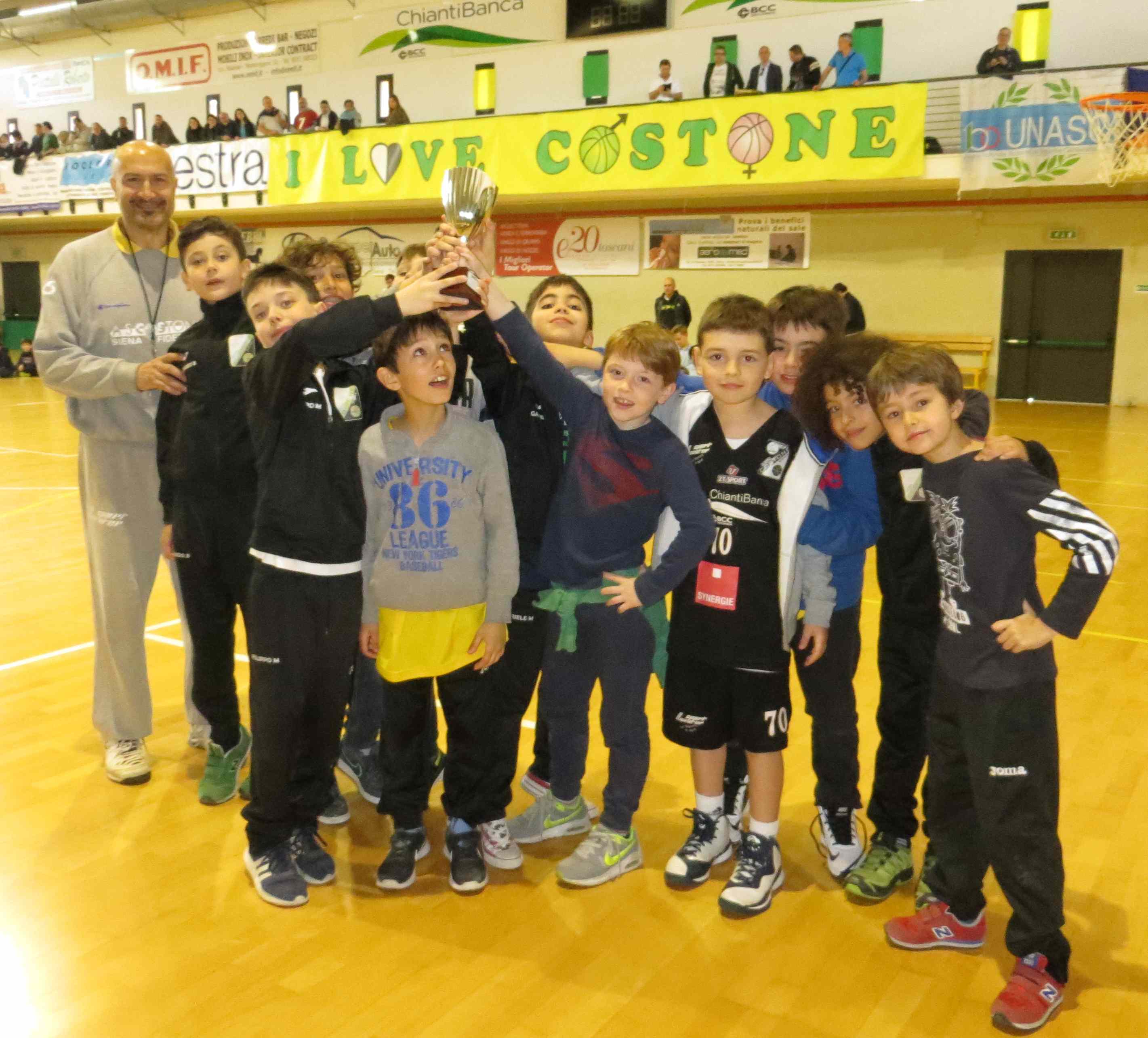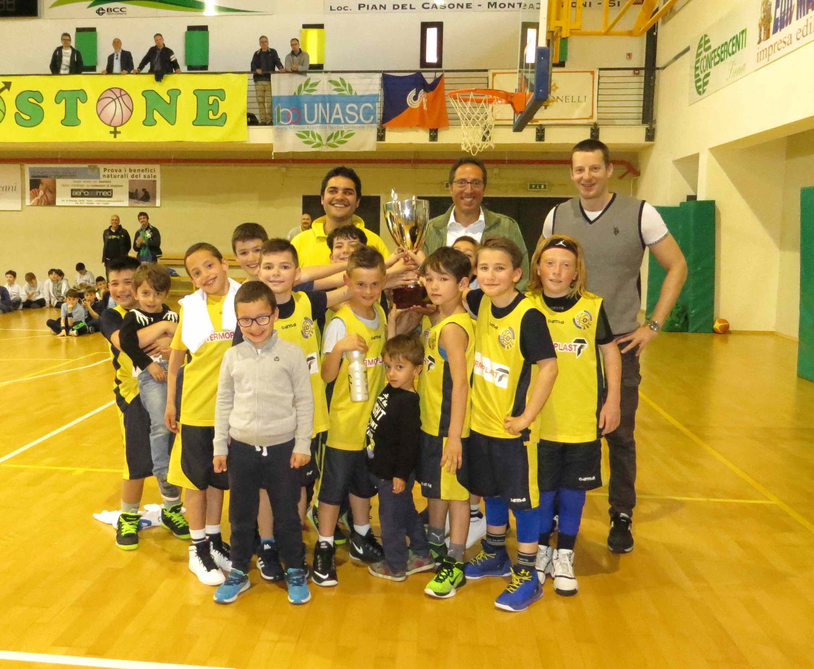 La formazione Aquilotti 2007 dell’ABC Castelfiorentino si aggiudica il VII Torneo dedicato ad Alberto Ceccherini, organizzato dal Costone, che si è svolto domenica 23 aprile nell’impianto sportivo di Montarioso. La compagine gialloblu ha battuto in finale la Virtus Siena con il risultato di 30-12. Nella finale per il 3° e 4° posto l’ha spuntata invece il Costone ‘giallo’ (2007) nei confronti della Scuola Basket Arezzo con il risultato di 25-23. Nell’altra finale, quella valida per il 5° e 6° posto, vittoria per il Costone ‘verde’ (anno 2008) che ha superato il Basket Valdambra per 36-22.