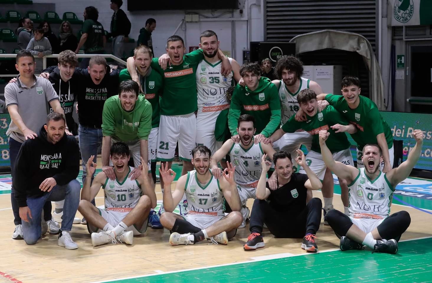 Serve un overtime alla Note di Siena Mens Sana Basketball per festeggiare la vittoria di una gara due giocata con il cuore e con la voglia di regalare ai propri tifosi una gioia indescrivibile.