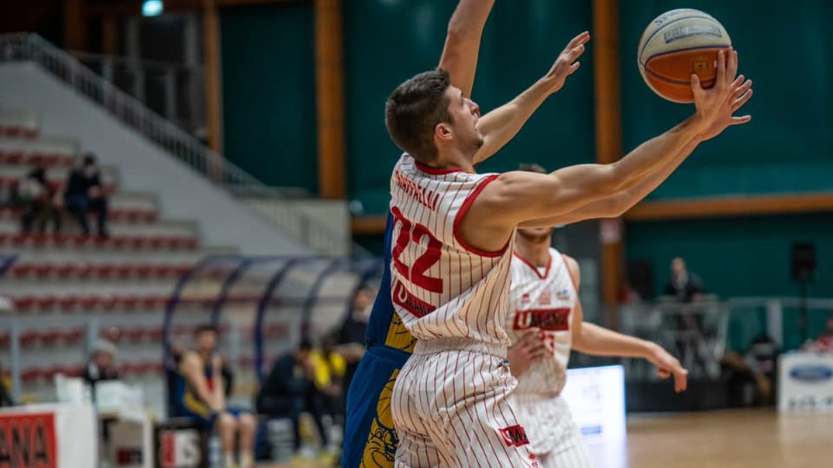 Chiusi mette la quinta vincendo contro la capolista Scafati al termine di una partita pazzesca decisa negli ultimi istanti. Avvio di fuoco di Scafati che scappa nel primo periodo cercando di portare la sfida sui propri binari. Chiusi va sotto anche pesantemente sull’8-22 ma la sensazione è che nonostante il passivo i ragazzi allenati da Bassi riescano a stare sul pezzo. Con pazienza l’Umana rientra con un grande secondo periodo. Il parziale è eloquente: il 25-12 dei secondi dieci minuti vale il sorpasso che manda le formazioni alla pausa lunga sul 38-34. Al rientro Scafati prova a cambiare l’inerzia, ma Chiusi con possessi ben orchestrati e una maggiore incidenza al tiro sale fino ai dodici di margine. Scafati è squadra vera e non si abbatte alle difficoltà. Recupera tornando sotto la doppia cifra e il parziale finisce 60-53. Ultimi dieci minuti clamorosi: la Givova alza definitivamente il ritmo mentre Chiusi deve respirare per le tante energie spese, ma non molla. Scafati torna ad un solo possesso poi alza la freccia nei minuti finali. L’Umana resta ben calata nella sfida, reagisce e poi piazza la zampata nel finale con un attentissimo Medford in fase di recupero e con i tanti liberi a disposizione. il finale è un thriller, ma la spunta Chiusi che sigilla con Wilson in lunetta sul 74-71 salendo a ventidue punti in classifica.